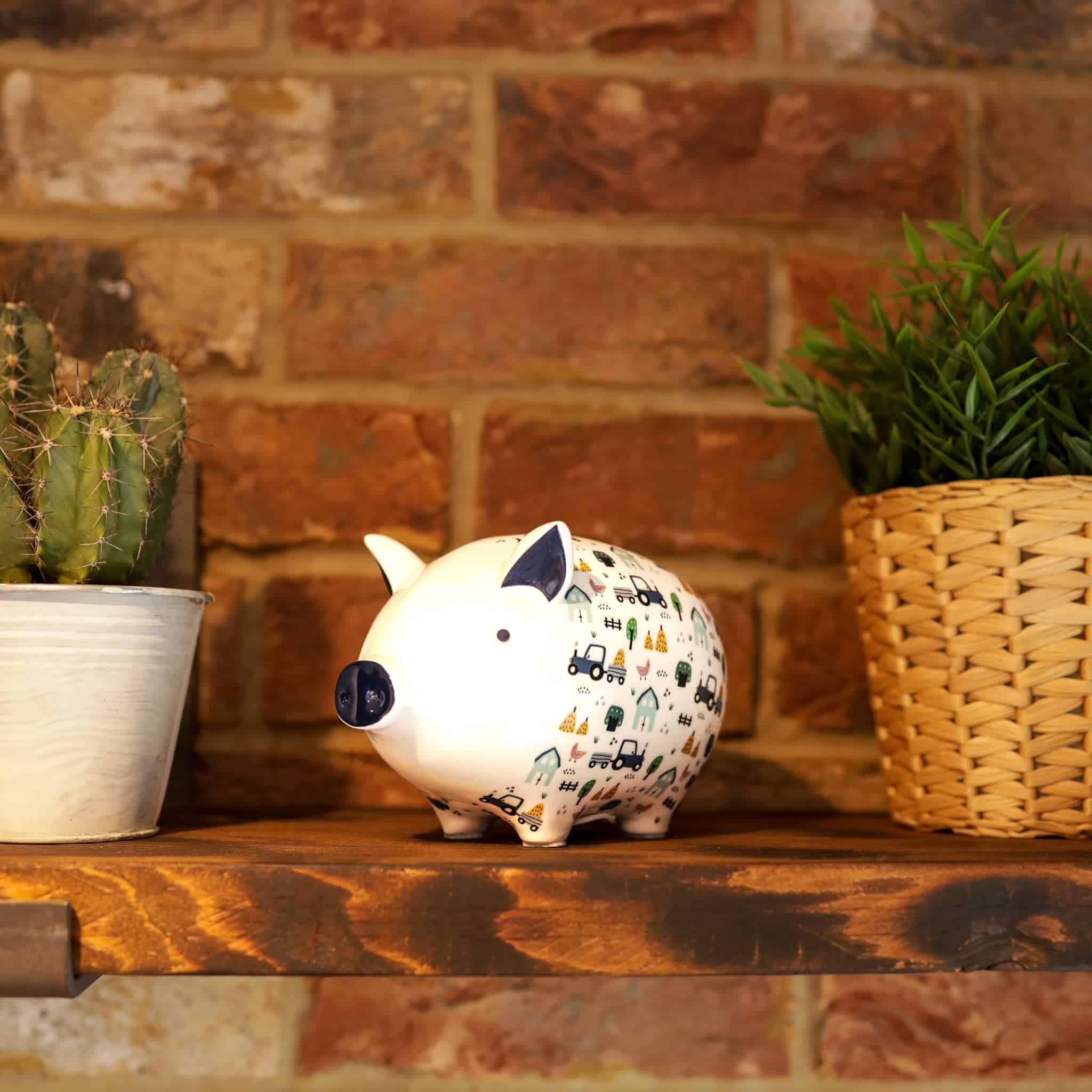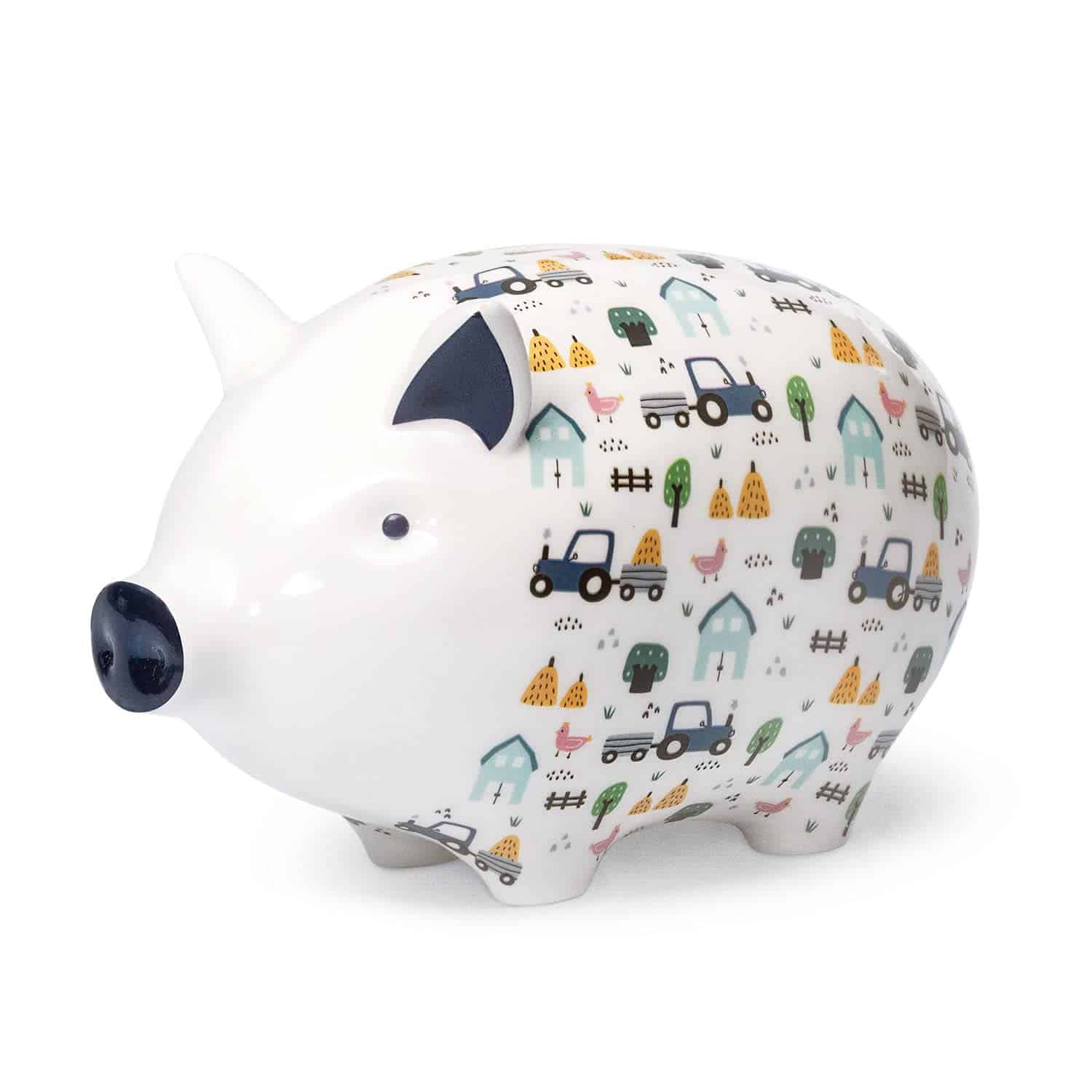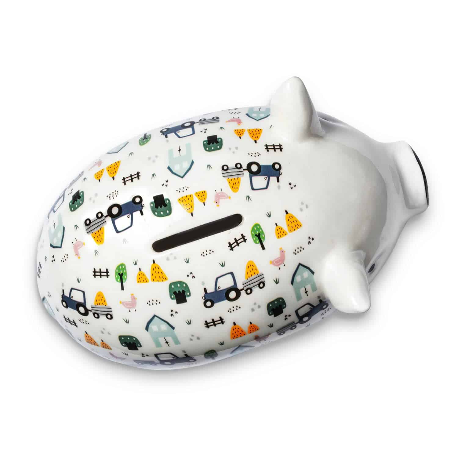 Con tratores de granja adorables, estas alcancías seguramente orientarán a tu pequeño en la dirección correcta con sus ahorros. Salta la valla y diviértete en la granja junto a nuestros lindos tractores, pollos y fardos de heno. Estas elegantes alcancías están hechas de materiales ecológicos de la mejor calidad que durarán toda la vida. Con diseños adorables de edición limitada, cada Tilly Pig está cuidadosamente fabricado a mano para el padre moderno que se preocupa por el futuro de sus hijos. Seguramente será la nueva alcancía favorita de tu hijo, Tilly Pig está aquí para inculcar habilidades de ahorro importantes para la vida. Detalles del producto – Material: Porcelana, Dimensiones: L16.5cm A9.5cm, A10cm, Peso: 390g, Edición Limitada: 5,000.