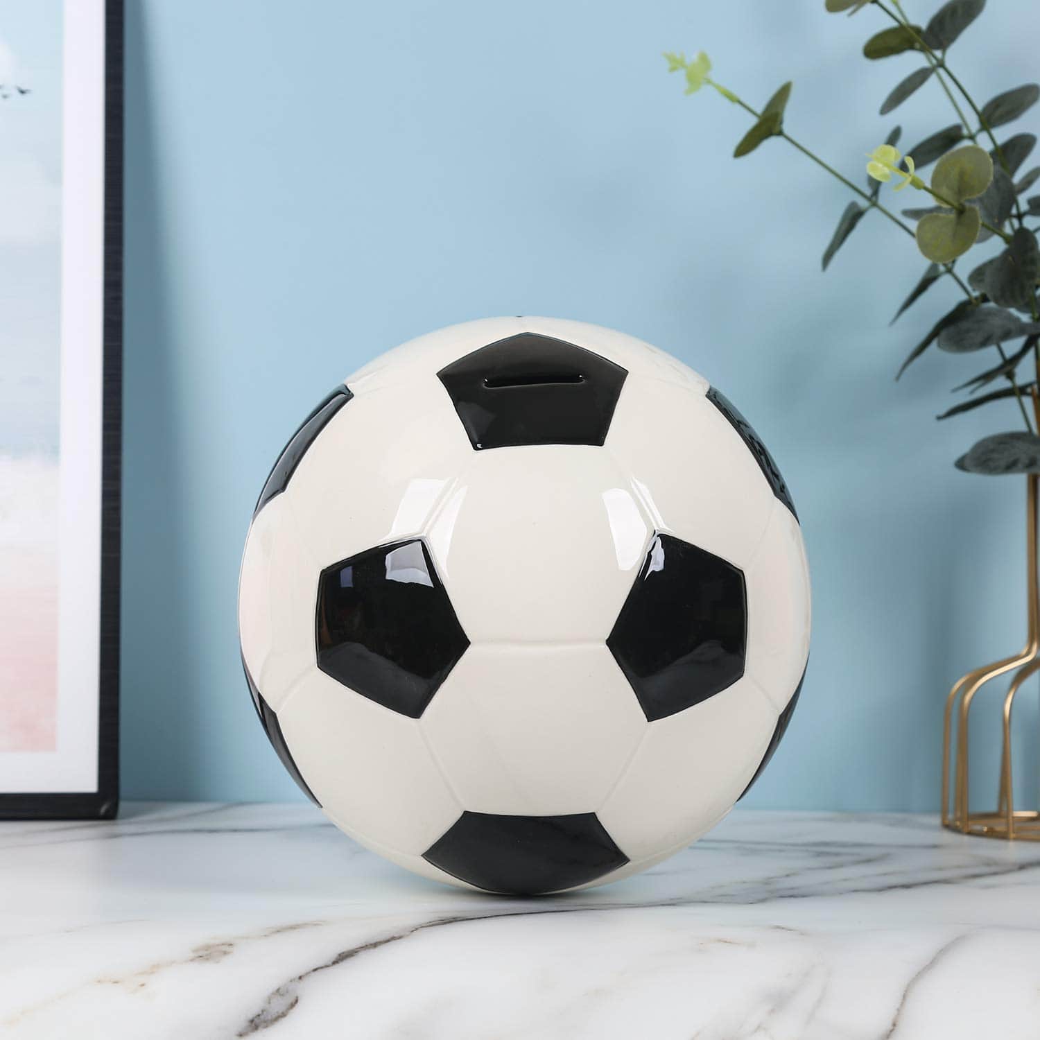 Esta alcancía de cerámica de fútbol está diseñada para los niños que aman el fútbol. Hecha de cerámica de dolomita de alta calidad, es amigable con el medio ambiente y seguro para su uso. Con un tamaño grande de 7.8″ de diámetro y 7.3″ de altura, esta alcancía tiene una apariencia esférica que le permite almacenar una gran cantidad de monedas.