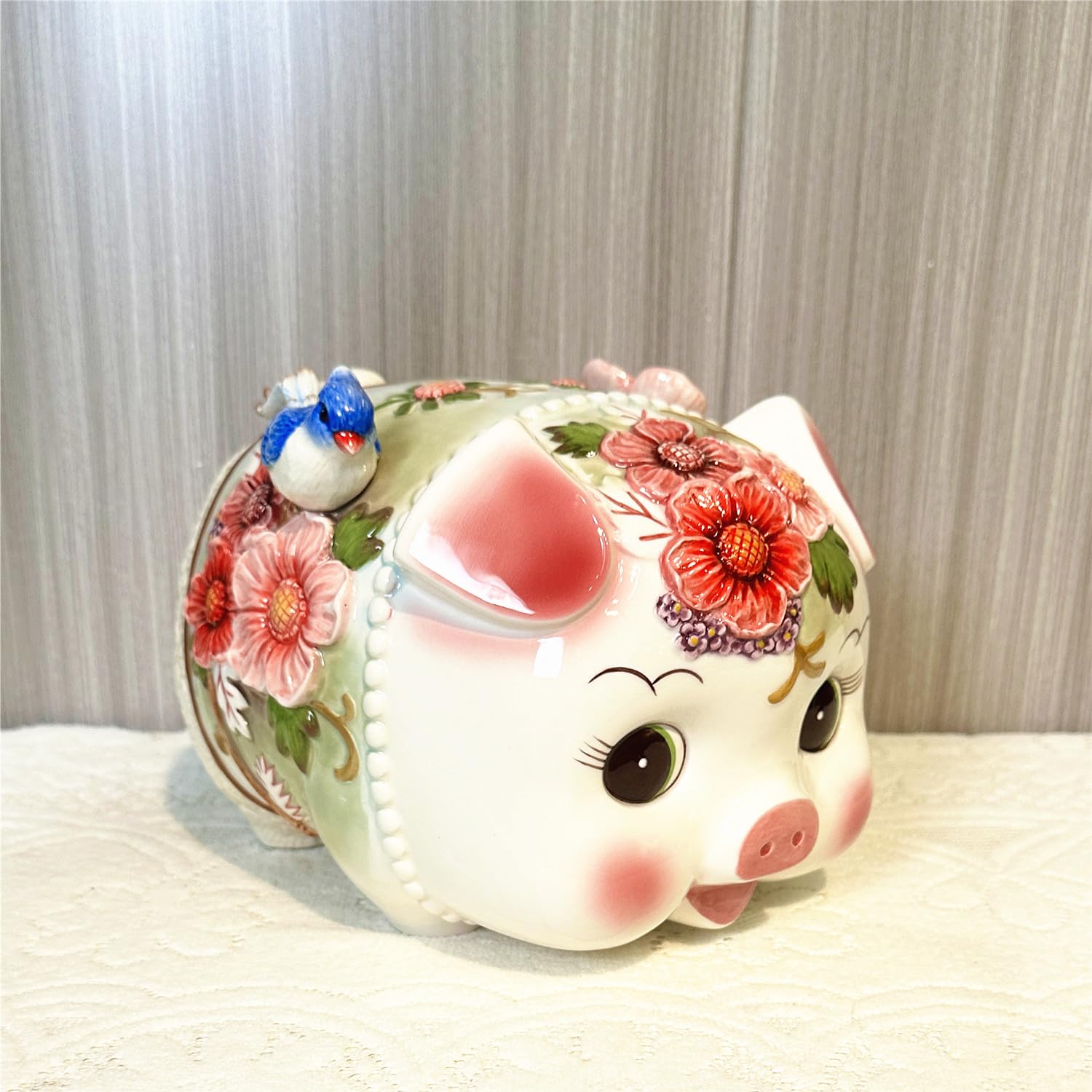 Alcancía de cerámica grande FORLONG – Diseño de rododendro