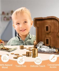 Cada vez que sus seres queridos depositen monedas en esta alcancía de letra de madera personalizada, estarán fortaleciendo su aprecio por el valor del ahorro y la planificación financiera. Esta alcancía de letras también tiene una tapa desmontable para que pueda acceder a las monedas con facilidad. Es un regalo personalizado y único para niños, recién nacidos, niños y niñas de cualquier edad, perfecto para Baby Shower, Día del Niño, Regreso a Clases, Acción de Gracias, Navidad, Cumpleaños, etc. ¡Garantía de satisfacción del 100%!