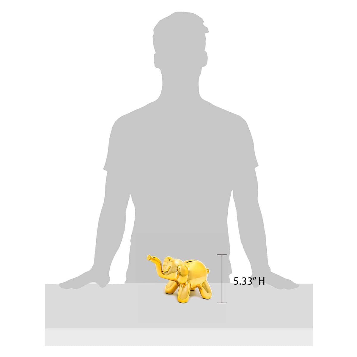 El Elefante Globo Alcancía de Dinero está hecho a mano utilizando materiales libres de tóxicos y obtiene su superficie brillante y metálica a través de un proceso altamente complejo llamado galvanoplastia. Práctica, linda y bellamente esculpida, es la forma perfecta de hacer una declaración audaz con tu decoración de hogar u oficina y darle un ambiente caprichoso y encantador.