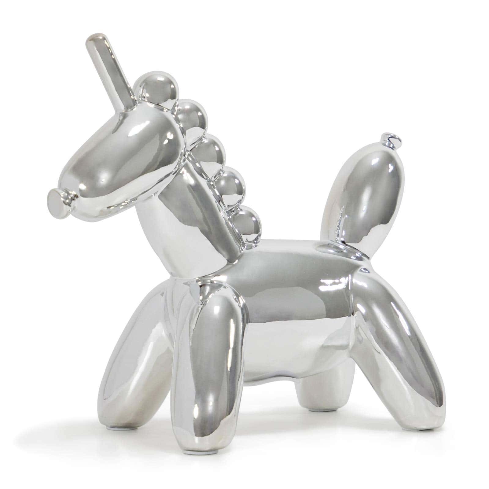 Alcancía Majestuosa de Proporciones MíticasCombina figuras de globos con el clásico concepto de alcancías de la infancia y obtienes algo único. Agrega un unicornio a la mezcla y sabrás que estás a punto de recibir un regalo legendario. Porque, en el fondo, sabes que la Alcancía Globo de Unicornio Grande no es solo un gran regalo para ocasiones especiales y para los fanáticos serios de unicornios, sino también un tierno recordatorio de seguir soñando y ahorrar en el camino también!Hecho a Mano con Amor y Diseñado para Robar el ShowCada unicornio grande con acabado brillante está hecho a mano utilizando materiales libres de tóxicos y debe su superficie altamente reflectante y fascinante a un complejo proceso llamado galvanoplastia. Ya sea que quieras agregar algo de color y fantasía a tu decoración moderna del hogar, algo extravagante y un poco mágico para adornar la guardería de tu recién nacido, o simplemente un toque juguetón para tu oficina, esta alcancía bellamente esculpida se convertirá en tu nueva pieza decorativa favorita.Para Momentos Preciosos y Ocasiones para RecordarLos regalos pensativos a veces son difíciles de encontrar, pero esta alcancía grande de unicornio con forma de globo hará un regalo práctico y memorable como ningún otro. Perfecto como primera alcancía de un bebé, un regalo genial para tu hija adolescente o simplemente una excusa para finalmente comenzar tu Fondo de Sueños, esta figurina adorable de unicornio ocupa poco espacio y se verá increíble en cualquier estante, mesa, escritorio o cómoda.¿Buscas una alcancía con forma de animal diferente Echa un vistazo al resto de nuestras alcancías de animales de globo para más opciones y elige la que más te guste!Quiénes SomosEn Made By Humans, nuestro objetivo es diseñar y crear accesorios y regalos contemporáneos imaginativos y lúdicos para el hogar y la oficina modernos. Impulsados por nuestra pasión por el gran diseño y encontrar el equilibrio perfecto entre forma y función, nuestros productos son audaces y caprichosos pero siempre funcionales y útiles, permitiéndote expresar tu personalidad única y hacer una declaración decorativa fuerte.