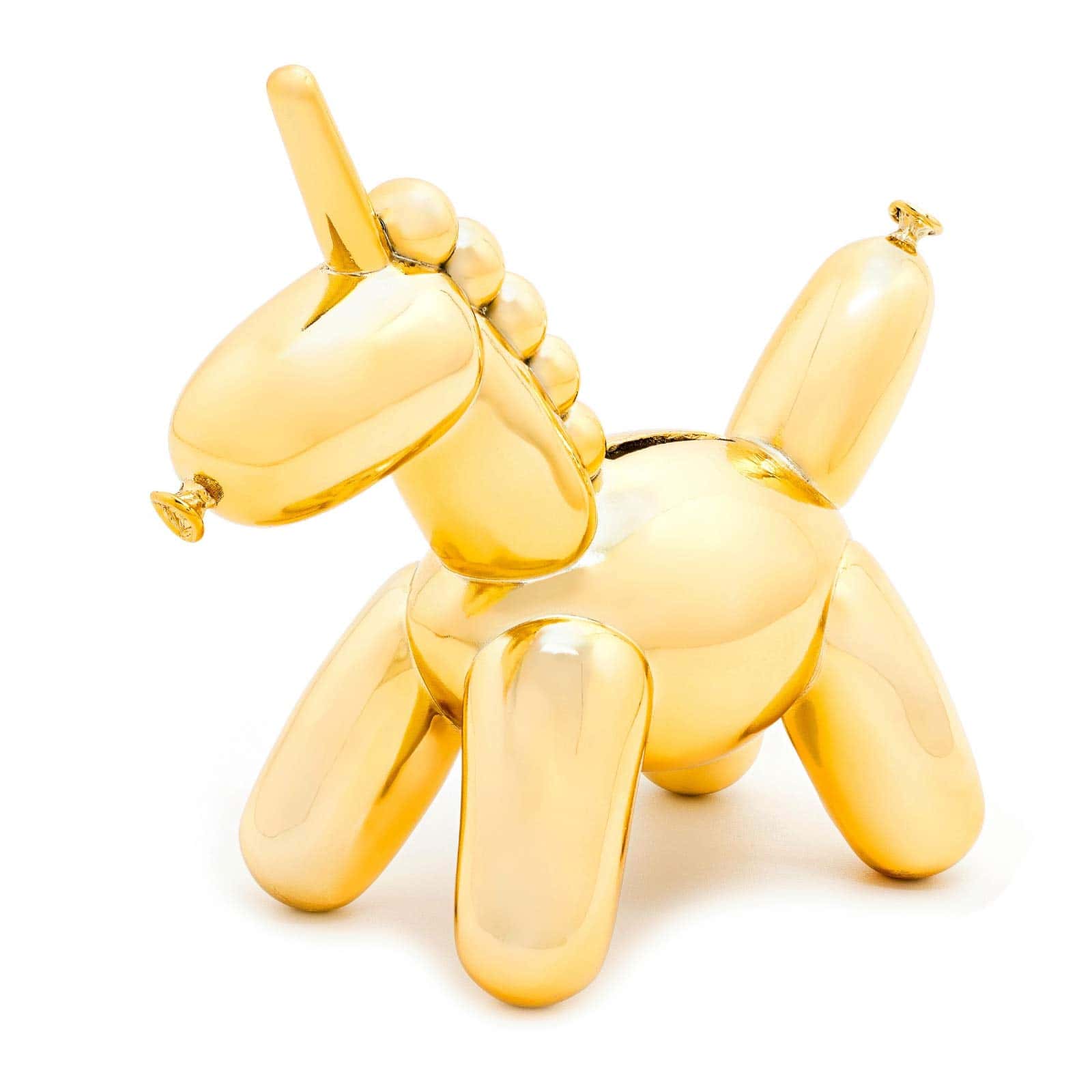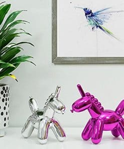 Cada unicornio bebé brillante está hecho a mano con materiales no tóxicos y debe su superficie altamente reflectante a un proceso altamente complejo llamado galvanoplastia. Ya sea que quieras agregar algo de color y fantasía a tu decoración moderna del hogar, algo excéntrico y un poco mágico para adornar la guardería de tu recién nacido, o solo un toque juguetón a tu oficina, esta alcancía bellamente esculpida se convertirá en tu nueva pieza decorativa favorita.