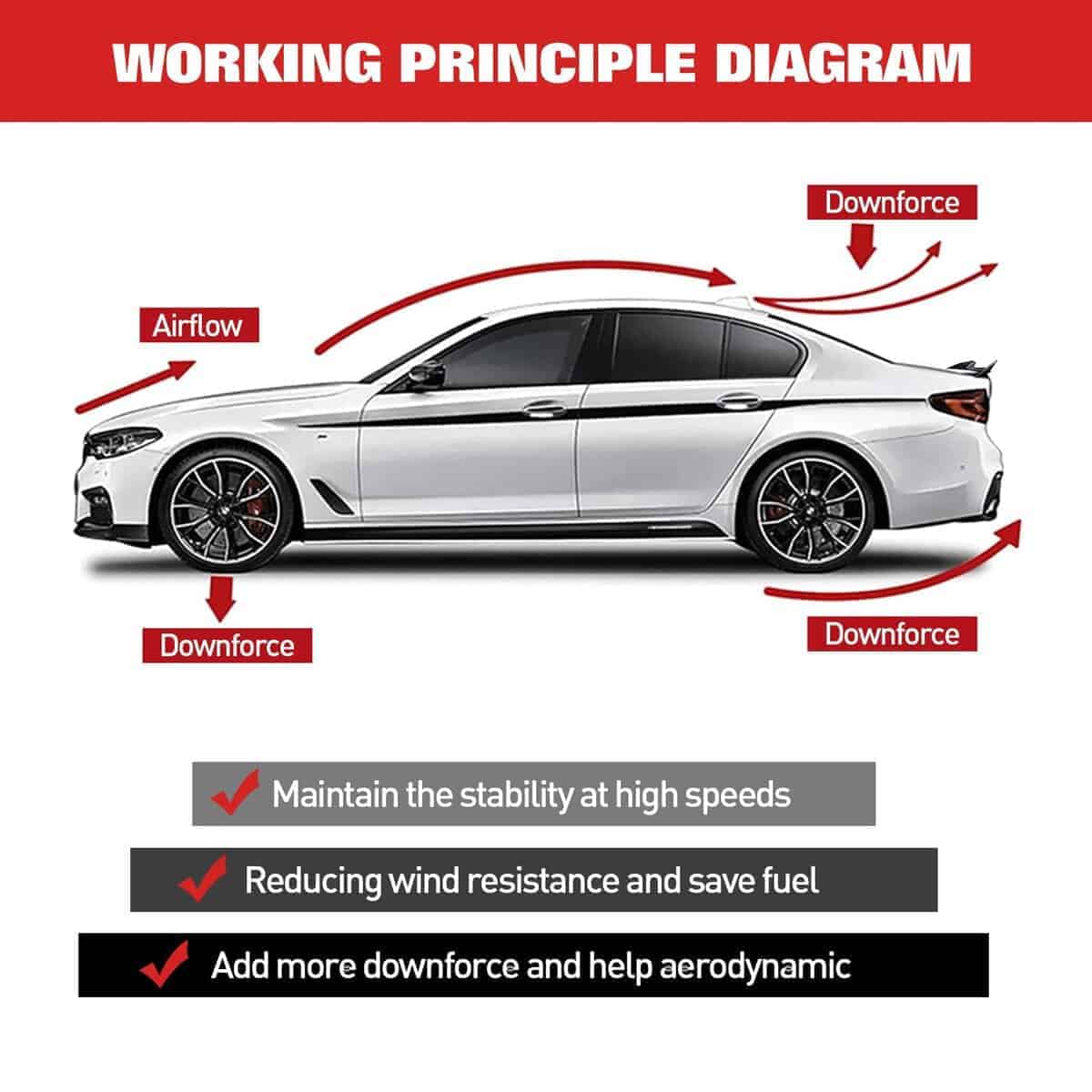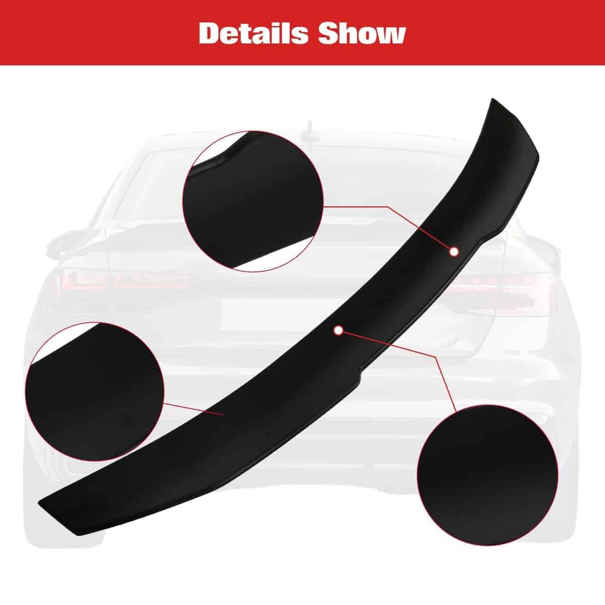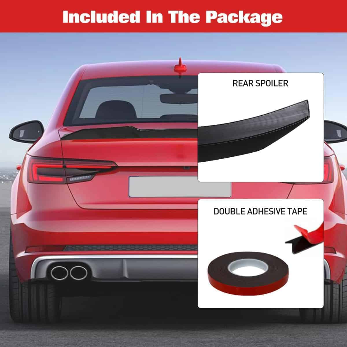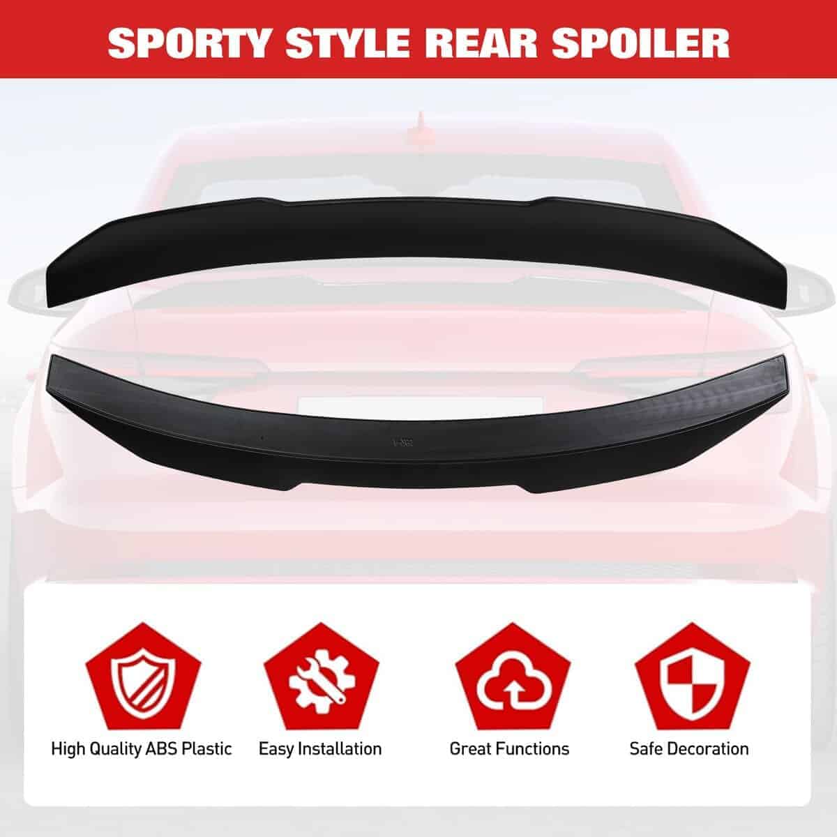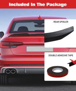 5. Instalación fácil: Nuestro alerón de maletero incluye cinta adhesiva en el paquete, lo que hace que la instalación sea sencilla. Simplemente aplique la cinta y presiónela firmemente en su lugar. Antes de la instalación, asegúrese de que la parte trasera de su automóvil esté limpia y seca. Para una fuerte unión, recomendamos aplicar una presión fuerte durante 48 horas.