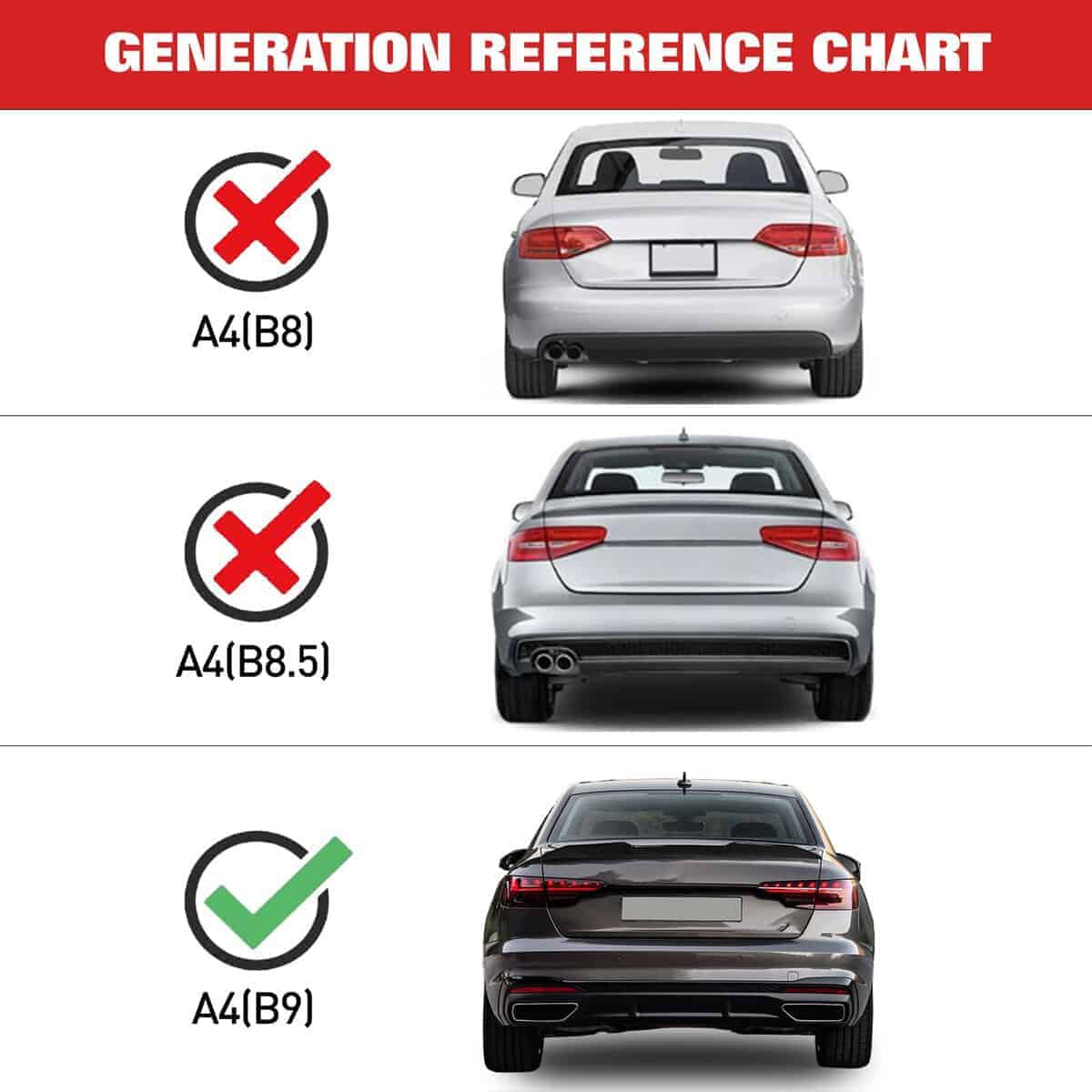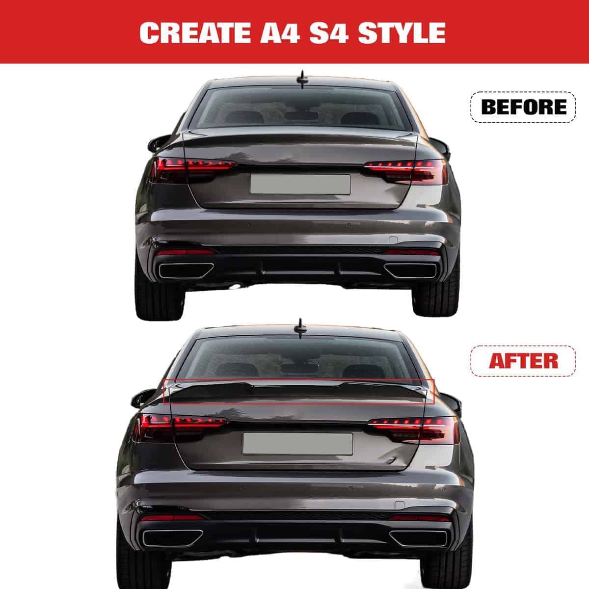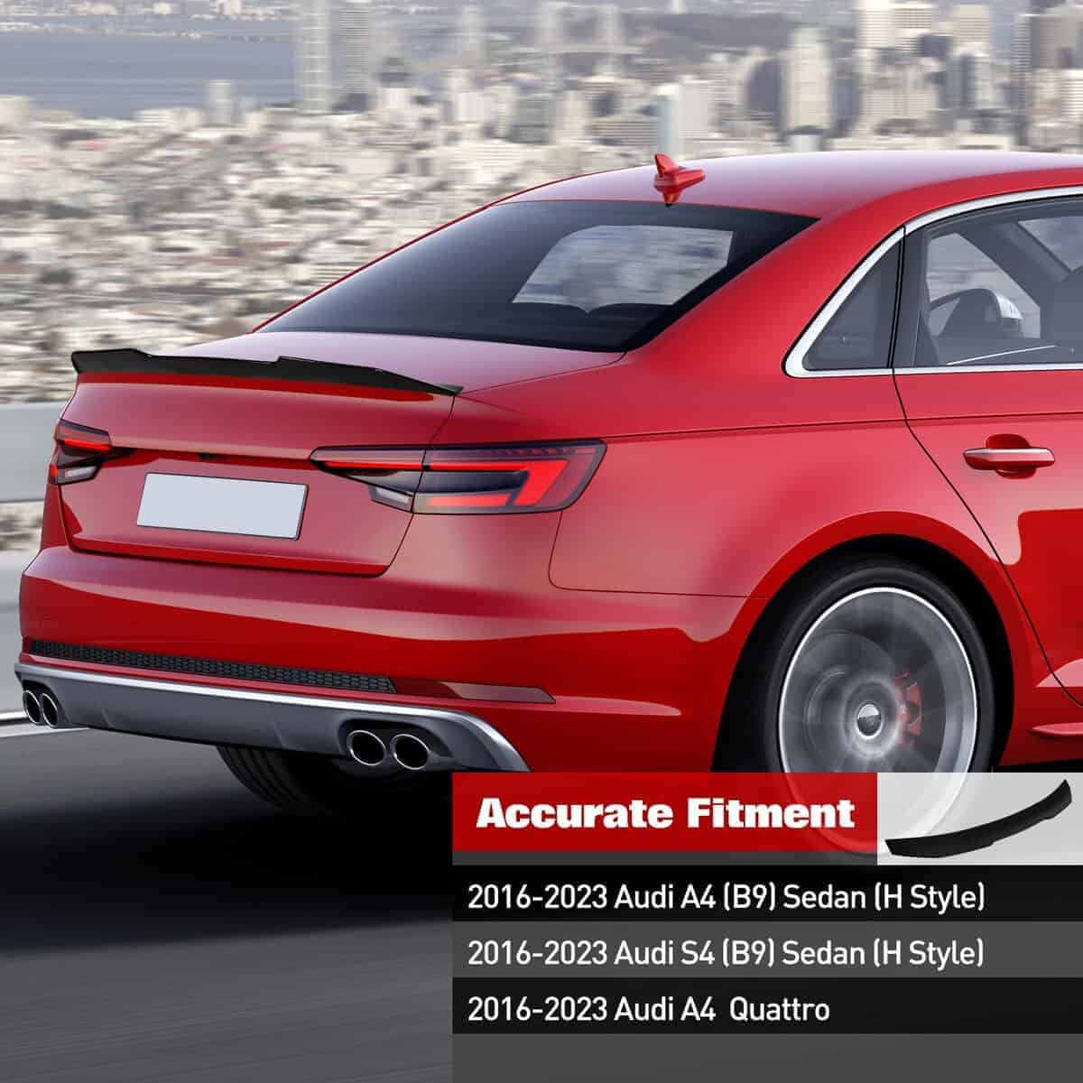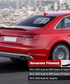 1. Ajuste personalizado – Este alerón de maletero está personalizado para Audi A4 S4 (B9) Sedán 2016 2017 2018 2019 2020 2021 2022 2023. Nota: para ahorrar tiempo y esfuerzo, por favor verifique si su modelo coincide antes de comprar.