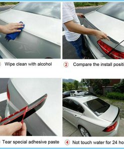 El principal beneficio de tener un alerón trasero en un coche suele ser reducir la resistencia al avance. Menos resistencia al avance puede significar un ligero aumento en la eficiencia de combustible. Los alerones también actúan para reducir la elevación sin añadir más peso al coche. Esto puede ayudar a mantener el coche más estable a velocidades más altas y mejorar la tracción sin afectar su rendimiento añadiendo peso en exceso. La mayoría de los alerones en el mercado requieren que perforares agujeros en el maletero. Un pequeño error arruinará tu vehículo, sin mencionar que es muy duradero. Nuestros alerones están diseñados para una instalación fácil, un proyecto rápido de domingo por la mañana. El alerón se coloca utilizando cinta adhesiva de doble cara de grado automotriz. Para garantizar que el alerón se mantenga fijado, recomendamos que la superficie del maletero se limpie a fondo, ya que ayudará al alerón a permanecer en su lugar de forma segura. Después de que se haya instalado el alerón, evita lavar tu coche durante al menos 3 días.