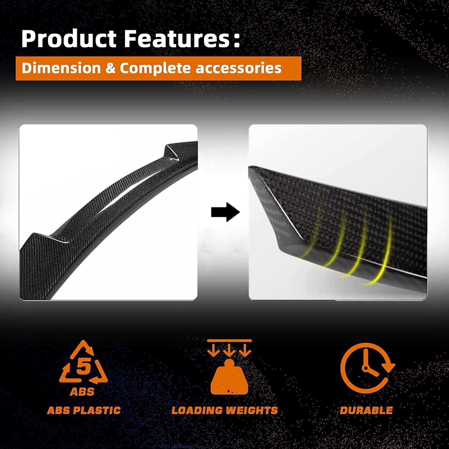 4. Estilo agresivo: Superficie pulida y brillante con recubrimiento negro brillante protegido del sol, alta resistencia, resistencia a impactos, desvanecimiento y resistencia al óxido. Añade un estilo súper genial, hace que su vehículo se destaque entre los demás. Ala trasera estilo M4 con un perfil elegante y sexy que le da a su coche un aspecto estético de rendimiento, mejora drásticamente el estilo de su coche.