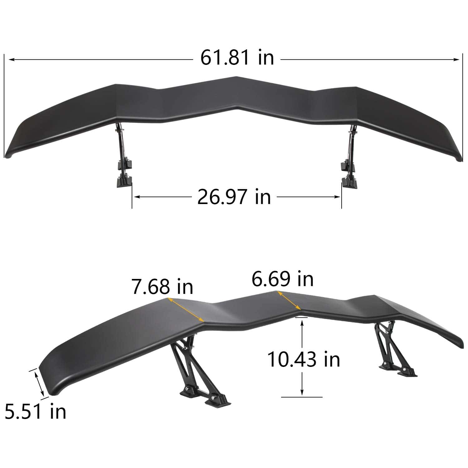 Compatibilidad: – Universal, para Chevy Camaro Dodge Charger Challenger Ford Mustang GT Lambo. Material Superior: – Fabricado con acrilonitrilo butadieno estireno (ABS) de alta calidad y soporte de aluminio. Función: – ayuda a generar más fuerza descendente en el vehículo, maximizando su contacto con el suelo para obtener la máxima tracción y agarre para aumentar la estabilidad. Fácil instalación: – Diseño de tornillo, fácil de instalar, se requiere perforar. (Se recomienda altamente un instalador profesional) Gran Característica: Una de las modificaciones más simples en el exterior de su automóvil, este alerón trasero de Sunluway le dará a su automóvil un aspecto completamente diferente. No solo le dará grandes apariencias, sino que también ayudará con la aerodinámica de su automóvil al reducir la resistencia al aire, o ayudar con la generación de más fuerza descendente, maximizando su contacto con el suelo para obtener la máxima tracción y agarre para aumentar la estabilidad.