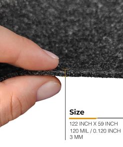 La alfombra Siless 59″x122″ negra para altavoz, cajón de subwoofer, auto, RV, barco, marino, camión, material de fieltro para maletero de coche es la solución perfecta para proteger y decorar sus altavoces o cualquier otra superficie. Hecho de fibra de poliéster de alta calidad, resistente a las manchas y duradero, este material no se deshilacha y soporta un uso pesado. Con un tamaño de 59 pulgadas x 122 pulgadas, es fácil de cortar y ajustar a la forma o tamaño deseado. Ideal para revestir cajas de subwoofer, altavoces, maleteros de coches, revestimientos de puertas y más. Añada un toque decorativo y proteja sus superficies con la alfombra Siless.