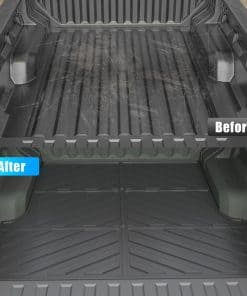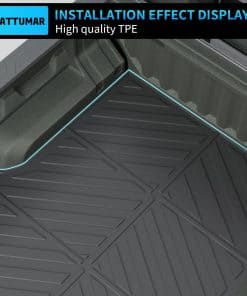 Material: Nuestra alfombrilla para cama y revestimiento de portón trasero están hechos de TPE (Elastómero termoplástico) de alta calidad, con alta resistencia, elasticidad, respetuoso con el medio ambiente y sin olor.