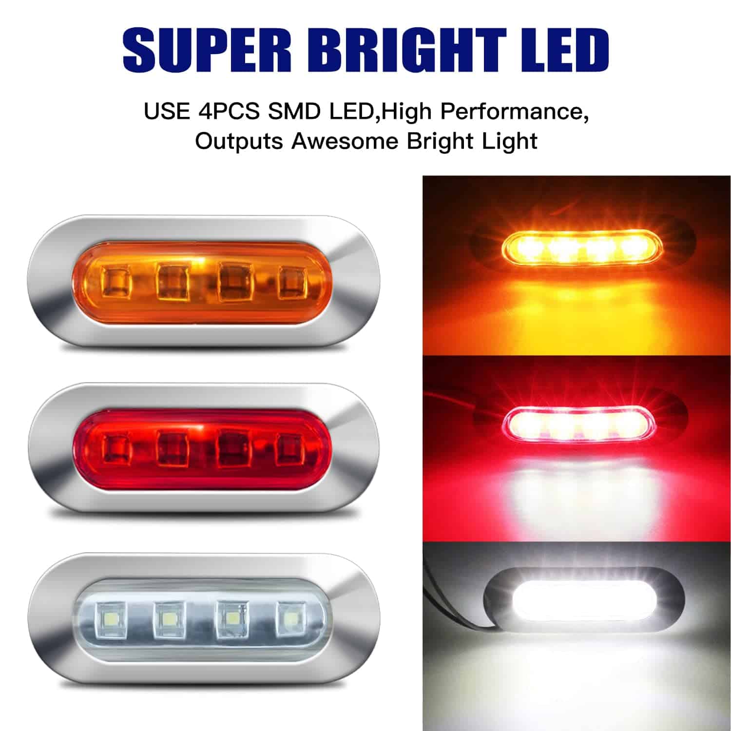 4. Ajuste y Ampliamente Utilizado: 10 luces indicadoras LED rojas + 10 luces indicadoras LED ámbar + 10 luces indicadoras LED blancas, Apto para luces decorativas de barco marino automóvil camión remolque, luces de navegación, luz indicadora lateral, luz de paso, luces indicadoras LED, luces de barco LED, luces de depósito, luces de marcador de remolque, luces de cortesía, luces de remolque LED, luz indicadora, y así sucesivamente.