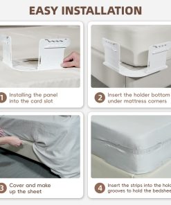3. Fácil Instalación. Nuestras correas de sábana ofrecen una configuración única. Una vez instaladas, puedes dejarlas como están. A diferencia de las bandas, clips y correas engorrosas y que consumen tiempo, las nuestras hacen que sea fácil cambiar las sábanas sin necesidad de voltear el colchón. También puedes quitarlas con facilidad.