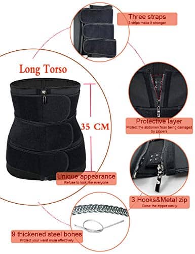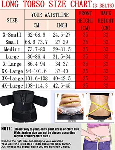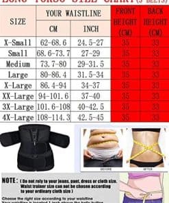 Mejor elección para la recuperación posparto o de cirugía abdominal, cesárea, perder peso, distensiones y debilidad abdominales, entrenador de vientre. Hay tiras de huesos en todo el waist cincher de Largo Torso que ayudan a mantener su espalda en la posición correcta. Proporciona control y forma firme. Los soportes flexibles mantienen la prenda cómodamente en su lugar. Adelgaza la cintura y el abdomen al instante para una figura de reloj de arena. Cintura adelgazada; postura mejorada, más segura. Diseñado para llevar mientras haces ejercicio o debajo de la ropa. Ayuda a minimizar la cintura y el abdomen para una forma de reloj de arena. Por favor, revise cuidadosamente nuestra tabla de tallas. Debido a que todos tienen diferente figura, por favor, elija un tamaño correcto según nuestra tabla de tallas después de medir su cintura. XS se ajusta a la cintura 24.5″- 27″. S se ajusta a la cintura 27″- 29″. M se ajusta a la cintura 29″- 31″. L se ajusta a la cintura 31″- 32.5″. X-Large se ajusta a la cintura 32.5″- 34.5″. XX-Large se ajusta a la cintura 34.5″- 36.5″. XXX-Large se ajusta a la cintura 36.5″- 39″. XXXX-Large se ajusta a la cintura 39″- 41″. Puede haber un error de 1-3CM por medición manual. Por favor, entienda. Si tiene alguna pregunta, avíseme, le responderemos en un plazo de 24 horas. CONSEJOS CÁLIDOS: por favor, mida su cintura y elija el tamaño correcto según nuestra tabla de tallas de waist cincher. No confíe en el tamaño de sus jeans o ropa; El olor del waist trainer puede ser repulsivo para algunas personas. Este olor es temporal y desaparecerá en un máximo de 3 a 4 días. Si no le gusta el olor, deje su cincher en un área bien ventilada y desaparecerá. La capa interna es de nylon y ha sido diseñada para absorber el sudor para que no se sienta incómodo. Si su piel es alérgica, evite el contacto directo con su piel y se recomienda usar ropa interior debajo del body shaper.