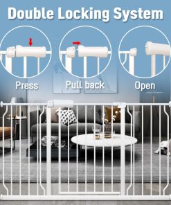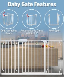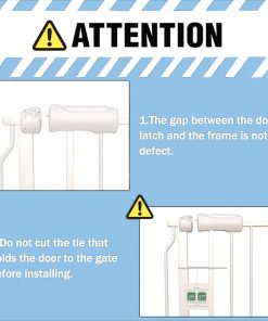 Puerta de seguridad resistente con 4 pernos de ajuste para escaleras/puertas, instalación fácil sin herramientas necesarias para bebés/perros/gatos. Altura de la puerta estrecha de tensión es de 30.7″, adecuada para niños de 6 a 36 meses y perros de tamaño pequeño a grande. Agrega seguridad para tu bebé o mascota. Componentes de la caja: 1 puerta estrecha para bebés + 4 pernos ajustables + manual de instalación. Aviso: No corte la cinta que sostiene la puerta al portón antes de instalarla. Deje una distancia para la brecha, normalmente debe dejar alrededor de 0.4″ para la brecha, de lo contrario estará demasiado apretado y no podrá abrir la puerta. Este producto no necesariamente prevenir todos los accidentes, por favor nunca deje al niño desatendido.