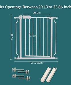 Puerta de Seguridad Extra Ancha ALLAIBB para Bebés Montada a Presión con Paso a través de Niños Mascotas de Seguridad para Niños Tensión Blanca Larga Grande Perros Puertas con Extensión para puertas Cocina (29.13-33.86″/74-86cm). La puerta de presión extra ancha de doble cara se cerrará automáticamente cuando se suelte el mango. Las puertas para niños o mascotas incluyen una función de mantener la apertura de la puerta grande cuando el ángulo de apertura es de 90° para facilitar el paso sin tener que abrir y cerrar siempre. El diseño duradero de acero elegante hace que la puerta de bebé metálica de cierre automático sea lo suficientemente resistente como para soportar el impacto de 180 libras. El sistema de liberación de seguridad de doble bloqueo hace que sea difícil para los niños pequeños abrir la puerta, pero los adultos pueden manipularla con una sola mano y pasar rápidamente. Las extensiones adicionales permiten extender el ancho de la puerta para otros espacios en el hogar. Fácil de instalar en 5 minutos sin herramientas ni perforación. Mantenga a sus mascotas alejadas de áreas peligrosas o mantenga a su bebé seguro con esta puerta moderna y funcional para su hogar.