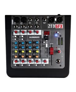 ZED-6FX ofrece la reconocida excelencia en construcción y audio de Allen & Heath en un formato compacto y portátil, convirtiéndolo en la elección ideal para músicos conscientes de la calidad, compositores e intérpretes. Ya sea generando ideas en casa, actuando en directo o grabando pistas para compartir en YouTube y Soundcloud, el ZED-6FX es un compañero versátil para cada paso del viaje creativo. Con el nuevo diseño boutique GSPre de preamplificador, el ZED tiene un ruido excepcionalmente bajo y un amplio margen de maniobra, con una calidez y profundidad analógica distintiva. ZED-6FX es el primer mezclador en incluir una suite especialmente creada de reverbs de calidad de estudio, delays y FX multi-modelo especiales, elaborados por los conocidos aficionados a los efectos internos de Allen & Heath. Los guitarristas estarán encantados de saber que el ZED-6FX viene con un par de entradas Jack de alta impedancia para Guitarra DI, lo que permite que las guitarras se conecten directamente al mezclador sin la molestia y el gasto de llevar cajas DI separadas. El ZED-6FX presenta un excepcional diseño de preamplificador nuevo, creado por el gurú analógico Mike Griffin y desarrollado a partir de su aclamada consola de grabación en estudio GS-R24. Conocidos como GSPre, los preamplificadores ofrecen un ruido excepcionalmente bajo y un amplio margen de maniobra, además de la calidez y profundidad por la que es famosa la gama analógica de Allen & Heath. Para dar forma tonal, los controles precisos de ecualización MusiQ han sido cuidadosamente calibrados para ser receptivos y precisos, lo que facilita dar forma y mejorar cada fuente musical. ZED-6FX cuenta con una nueva suite de reverberaciones y delays de calidad de estudio, elaboradas minuciosamente para mejorar tus grabaciones y actuaciones. Los efectos multi-modelo especiales proporcionan combinaciones únicamente dinámicas de reverberaciones y delays. ZED-6FX viene con dos entradas Jack de alta impedancia para Guitarra DI, permitiendo que las guitarras se conecten directamente al mezclador sin la necesidad de cajas DI.