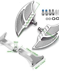 Fabricados a partir de un bloque de aluminio macizo, los estribos ALLOYFORGE Chrome Touring no solo mejoran el aspecto de tu motocicleta, sino que también proporcionan una comodidad excepcional. El elegante acabado negro está anodizado y presenta secciones de acento mecanizadas recortadas en la parte superior y los lados, agregando un toque de sofisticación a tu vehículo. Con una longitud extendida para brindar mayor comodidad y espacio para los pies, estos estribos vienen completos con todos los herrajes de montaje necesarios para una instalación sencilla. El paquete incluye un par de estribos delanteros para el conductor, un par de reposapiés traseros para el pasajero, una palanca de cambios y clavijas del cambio, un pedal de freno grande y un par de soportes de gancho de montaje para el pasajero. Cada estribo es elaborado con un estilo mecanizado por CNC, pulido y luego anodizado, lo que garantiza una calidad superior y durabilidad excepcional. ¡Elige los estribos ALLOYFORGE Chrome Touring para una experiencia de conducción renovada y de alta calidad! Compatible con modelos como Street Glide FLHX, Road King Special FLHRXS, Softail Slim, Heritage, entre otros.