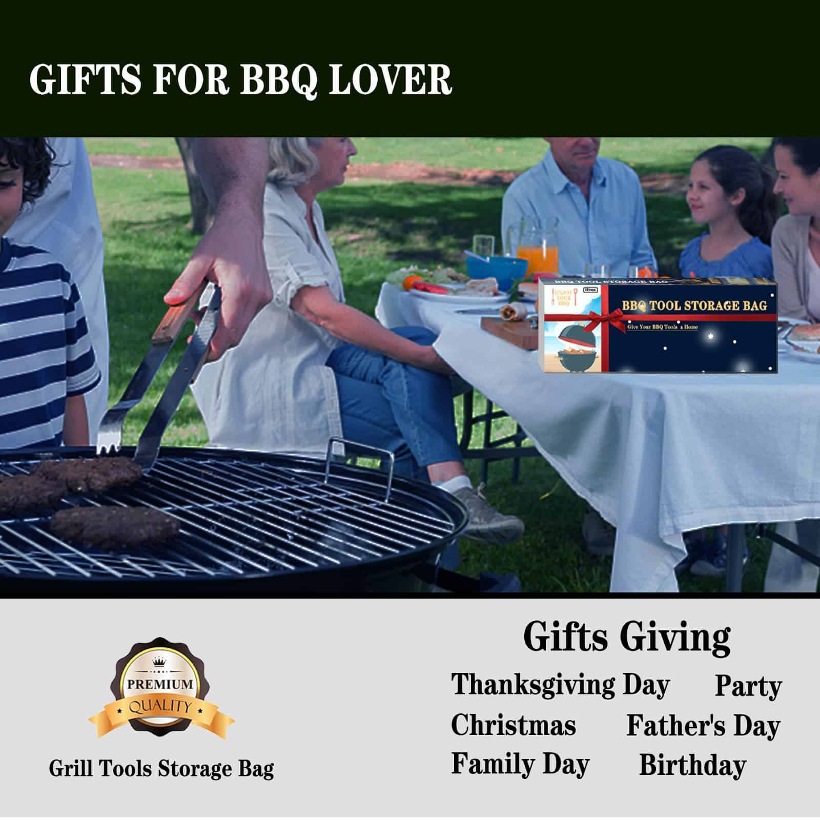 4. REGALOS PARA AMANTES DE LA BARBACOA – Bolsa de almacenamiento de herramientas para parrilla, bien hecha, hermosa y elegante, puede dársela a su esposo (esposa), familia, amigos, vecinos.