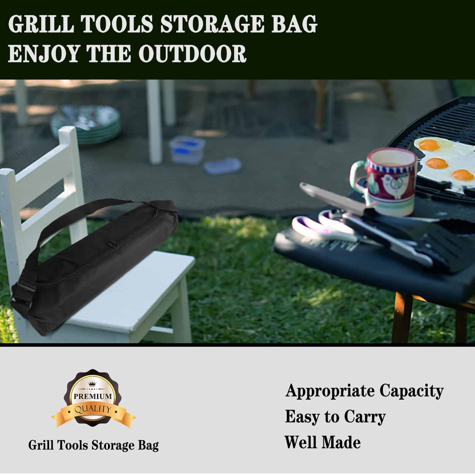 2. CAPACIDAD ADECUADA – Bolsa de almacenamiento de herramientas para parrilla, puede contener más de 10 piezas de herramientas para parrilla de 18″, lo que hace que sea más conveniente transportar sus herramientas para parrilla.