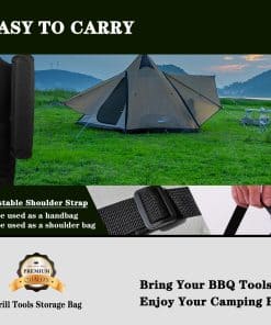 3. FÁCIL DE LLEVAR – la correa de hombro ajustable se puede utilizar como bolso de mano y bolso de hombro, lo que le permite transportar herramientas de manera más conveniente y disfrutar mejor del camping y la barbacoa.