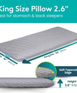 BLISSBURY King Stomach Sleeping Pillow es la opción perfecta para los que prefieren dormir boca abajo y de espalda. Con unas dimensiones generosas de 34 pulgadas de largo x 16 pulgadas de ancho x 2.6 pulgadas de alto, es una versión King Size de la almohada Stomach de BLISSBURY, lo que la hace 8 pulgadas más ancha que la estándar. Este almohada ofrece un soporte excepcional para la parte baja de la espalda y el cuello, reduciendo la tensión y mejorando la comodidad mientras duermes. Fabricada con espuma viscoelástica premium CertiPUR-US, está libre de sustancias químicas nocivas y retardadores de llama peligrosos, garantizando un sueño seguro y reparador. La funda de almohada de doble tejido posee una textura suave que absorbe la humedad, está hecha de Rayon (65%) y poliéster (35%), y está disponible en blanco o gris para adaptarse a cualquier juego de sábanas. La espuma viscoelástica suave y refrigerante, con infusión de gel y agujeros de ventilación, mantiene fresco y cómodo mientras dormir. Además, la almohada plana estabiliza suavemente la cabeza, lo que puede ayudar a reducir los ronquidos para una experiencia de sueño aún más placentera.