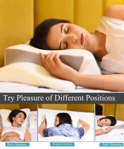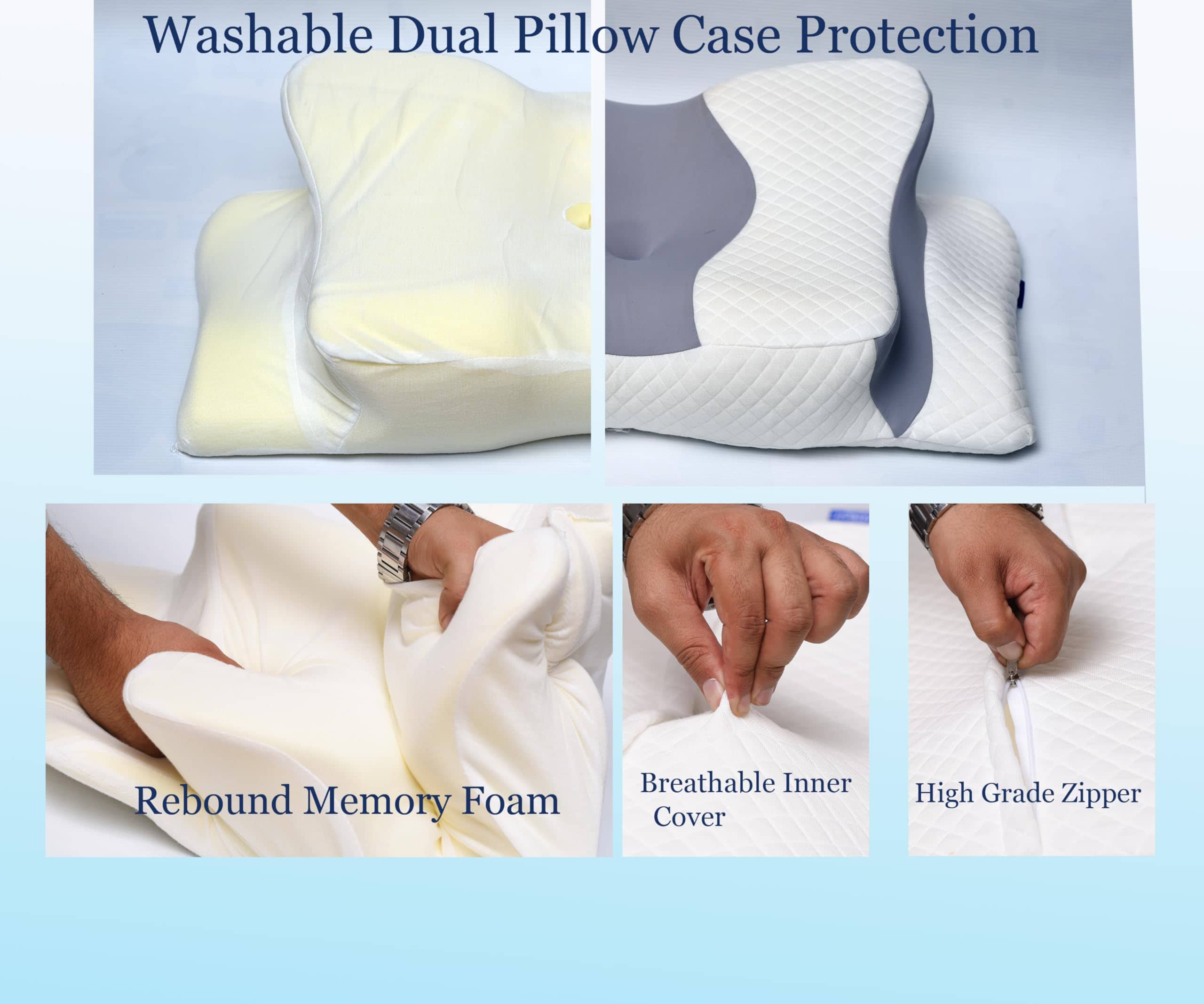 ONE PILLOW, ALL POSITIONS! Con tantas almohadas de espuma viscoelástica diseñadas específicamente para dormilones de lado, de espalda y más, ¿cómo puede nuestra almohada cervical ser la indicada para todos? Se reduce a nuestra mezcla perfecta de almohada ortopédica basada en varios años de experiencia y en ayudar a millones a encontrar su ajuste ideal. La alta altura es la mejor para personas con cuerpos más grandes y dormilones de lado, mientras que la altura baja es óptima para los que duermen de frente, de espalda y otros tipos de dormilones. Además, es increíblemente moldeable, lo que facilita darle forma y ajustarla justo debajo de tu cabeza y cuello para el mejor soporte en cualquier posición. ¡Experimenta un sueño continuo y placentero con nuestra versátil almohada! Diseñada con precisión meticulosa, esta innovadora almohada cervical cuenta con múltiples zonas de contorno únicas diseñadas específicamente para abrazar la curvatura natural de tu cuerpo. Cada zona de contorno trabaja armoniosamente para abordar puntos de presión específicos, proporcionando apoyo completo a tu cuello, hombros y brazos, aliviando eficazmente el dolor de cuello y la rigidez muscular. Ya no tendrás que comprometer la calidad de tu descanso. Funda de almohada transpirable y extraíble La almohada para dormir cuenta con una funda de almohada de doble capa de alta calidad que es suave y se ajusta perfectamente al núcleo de la almohada, con 3 veces más transpirabilidad que otras almohadas de contorno. Es extraíble con una cremallera, lavable a máquina. El material de la funda de almohada se adapta perfectamente a la piel, con una tela suave y fresca que te mantiene fresco toda la noche, permitiendo que la piel respire y que tengas una noche seca. ¡Dale el sueño cómodo que deseas! Espuma viscoelástica de rebote lento En el corazón de esta almohada de espuma viscoelástica se encuentra la espuma viscoelástica de alta densidad. Se moldea perfectamente a tu cuello, proporcionando un soporte óptimo y reduciendo la presión cervical. Con la característica de rebotar en 3-5 segundos, las almohadas para el cuello tienen la sensación de suavidad del algodón y el soporte del látex. La almohada ortopédica de contorno no se volverá plana, perderá su forma o densidad después de un uso prolongado. ¡La mejor inversión para tu descanso y salud!