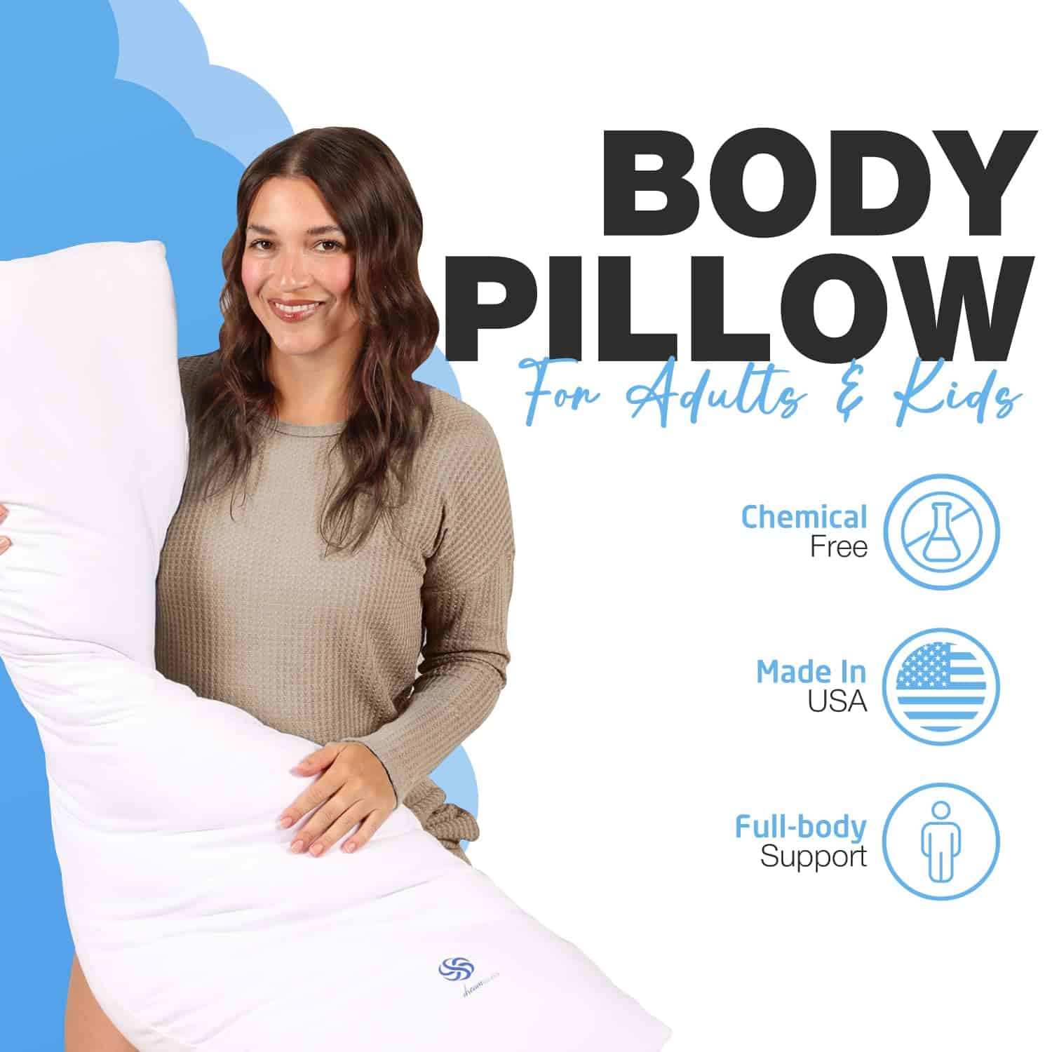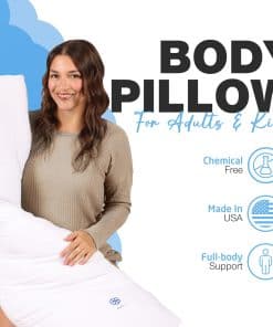 5. HECHO EN EE. UU. – Orgullosamente fabricado en Estados Unidos por una pequeña empresa local, nuestra gran almohada para cama apoya la mano de obra nacional y la calidad excepcional. Versátil en su uso, sirve como una almohada corporal completa para adultos, una almohada de enfriamiento para dormir de lado, y una almohada entre piernas, atendiendo a todos los tipos de cuerpos para una comodidad y alineación personalizadas. Esta almohada suave significa apoyar la industria local y disfrutar de un producto de alta calidad para mejorar tu experiencia de sueño.