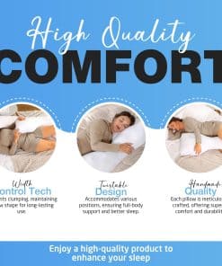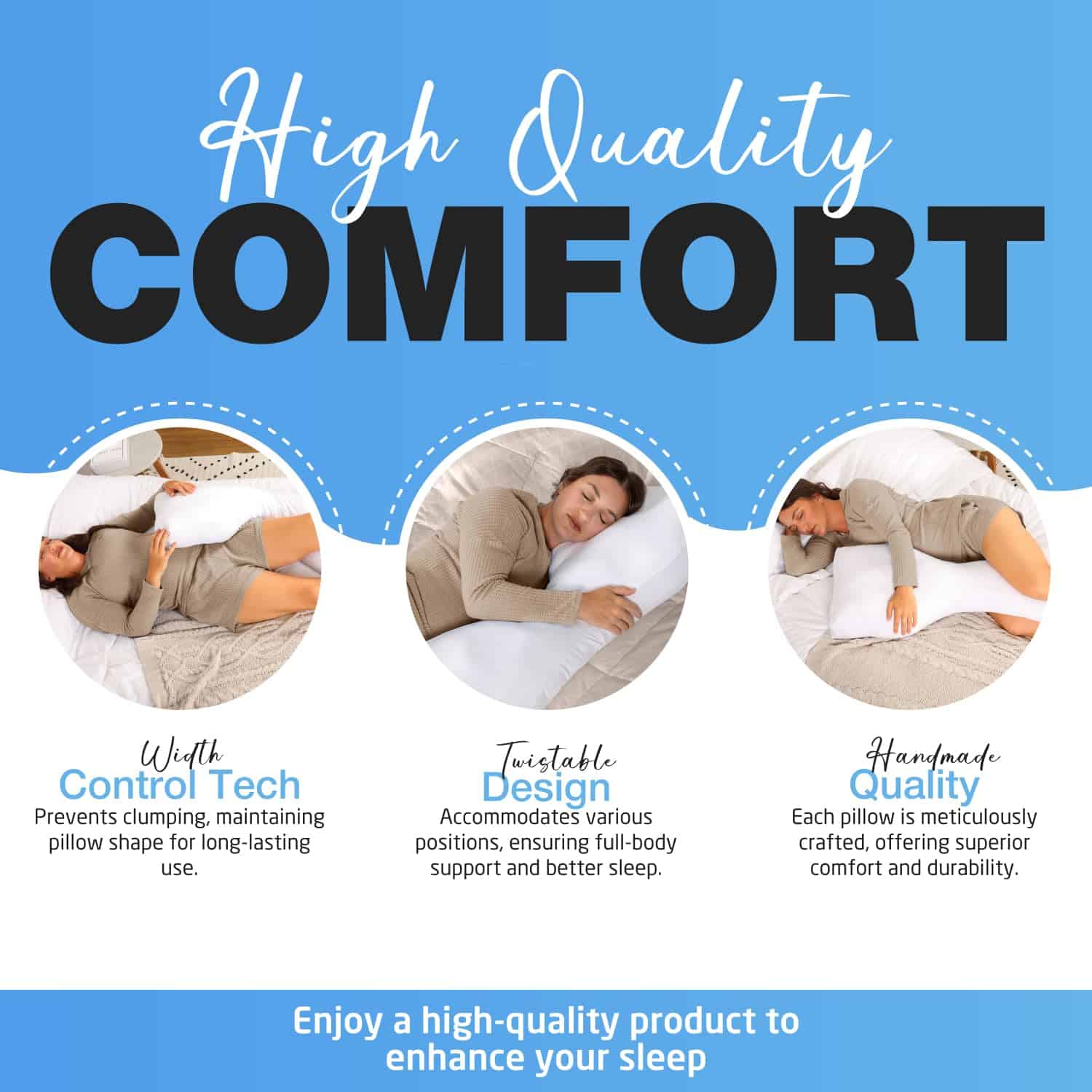 2. CALIDAD HECHA A MANO – Cada una de nuestras almohadas corporales está meticulosamente hecha a mano, asegurando una comodidad y durabilidad superiores que las distinguen de las alternativas producidas en masa. Estas almohadas firmes para cuerpo están elaboradas con atención al detalle y ofrecen un soporte sin igual y una sensación de lujo, mejorando tu experiencia de sueño. Nuestro compromiso con la calidad significa que cada almohada de abrazo larga está diseñada para brindar comodidad duradera, convirtiéndola en una adición perfecta a tu rutina nocturna.