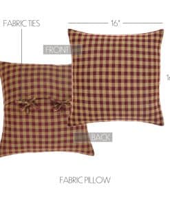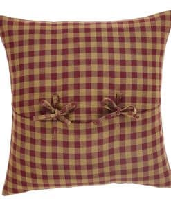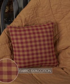 Almohada cuadrada de algodón rojo en cuadros primitivos de