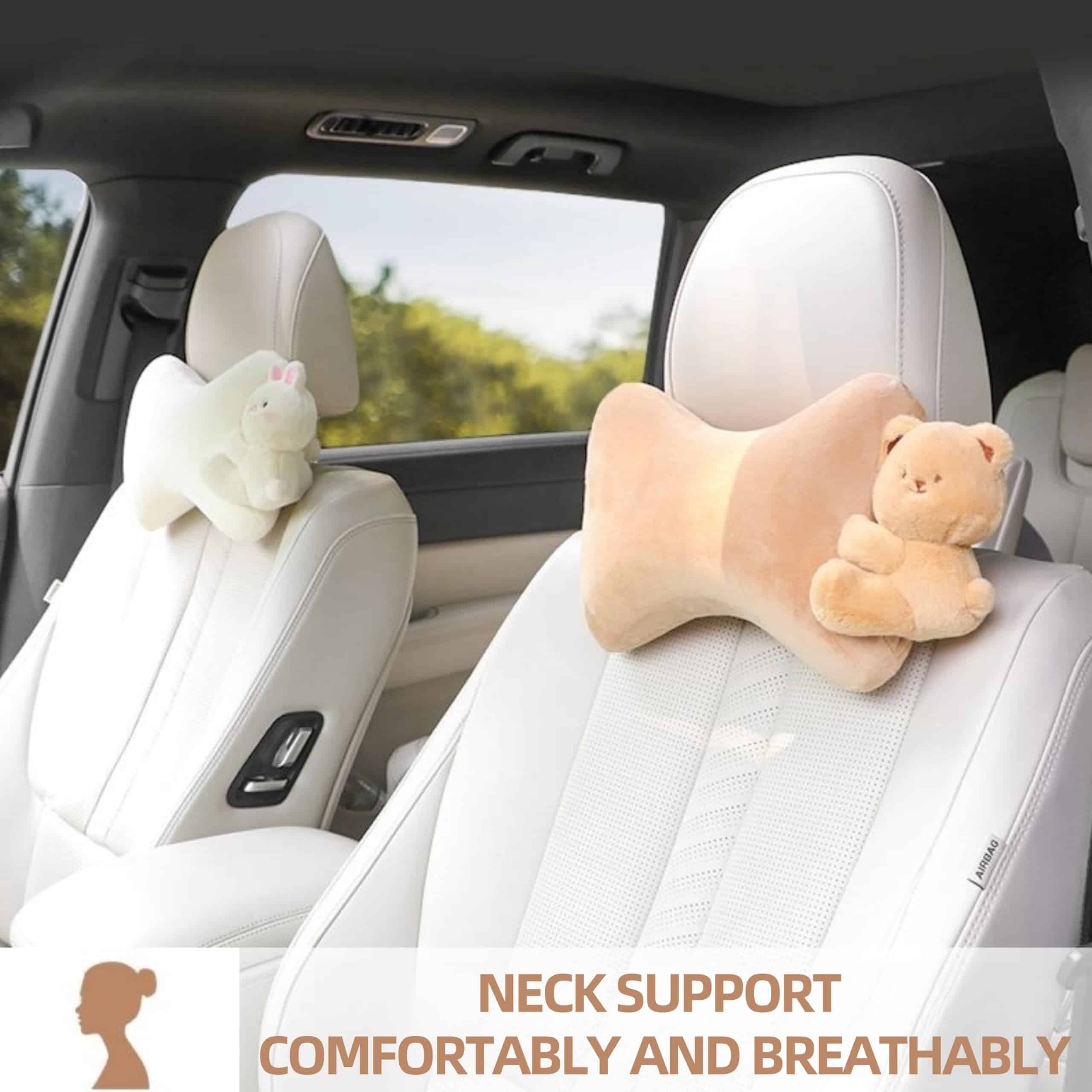 1. Llave Estética Linda oso conejo de peluche abrazando la almohada añade una atmósfera juguetona y animada al interior de tu coche.