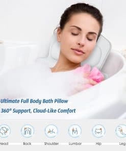 2. – & : Diseñada con curvas contorneadas para acunar suavemente su cuello, espalda, piernas y caderas en un cojín transpirable tipo nube. Además, nuestra almohada de baño aumenta el grosor de la almohada de cabeza a 3.35 pulgadas para soportar su cuello y cabeza. La envoltura sin costuras abraza su forma, convirtiendo su bañera básica en una experiencia tipo spa perfecta para un largo remojo, lectura o meditación. 52.4″L x15.75″W.