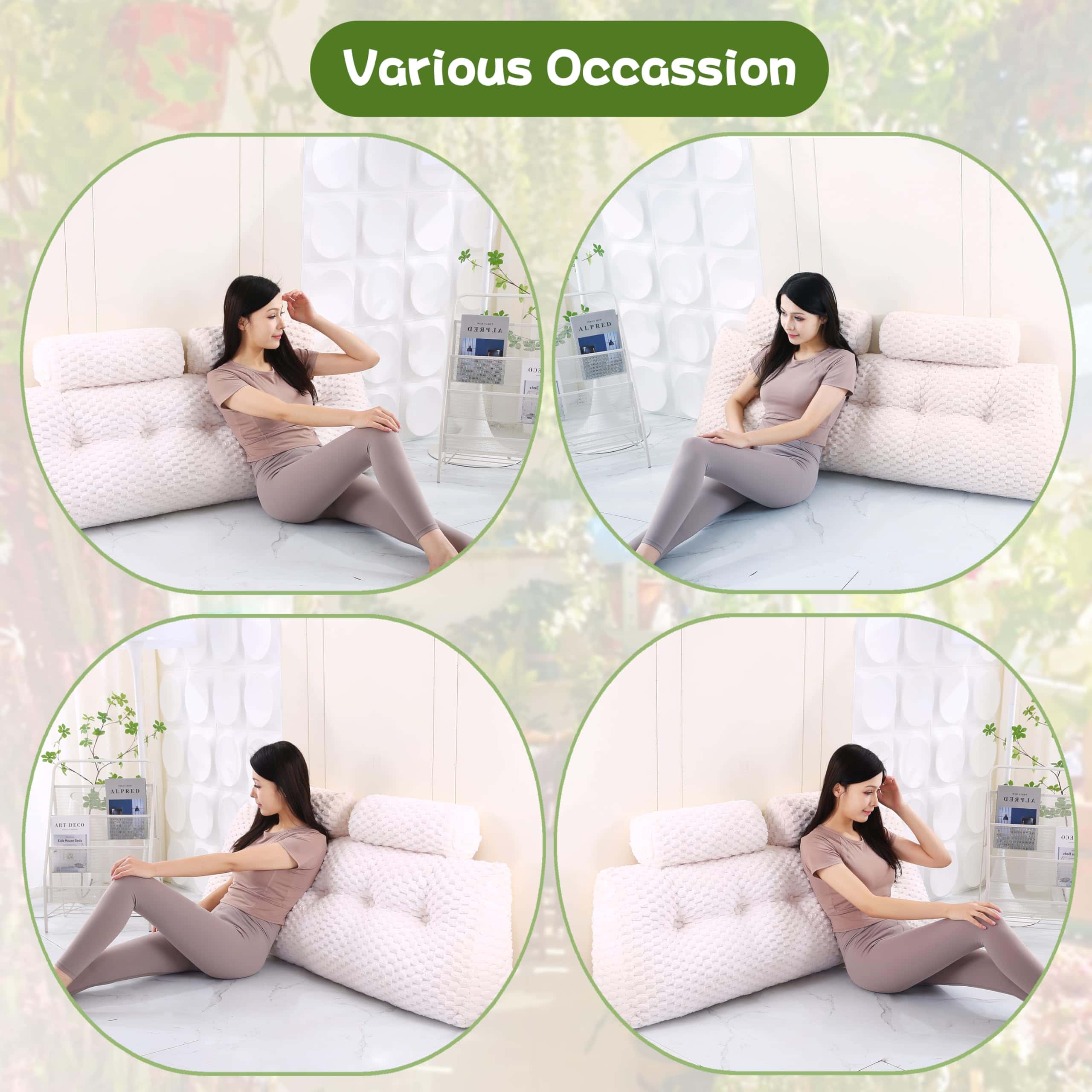 La almohada de cabecera de cuña está fabricada con tela de terciopelo 3D premium, que proporciona una sensación rica y lujosa. Esto no solo agrega un toque de elegancia a la habitación, sino que también garantiza comodidad y soporte. El uso de fibras de poliéster de alta densidad 40D para el relleno sugiere durabilidad y resistencia, prometiendo comodidad duradera. La forma ergonómica de la almohada de cabecera de cuña se alinea con la curvatura natural de la espalda, ofreciendo un soporte óptimo para la parte superior del cuerpo. Este diseño es particularmente beneficioso para reducir el estrés en la espalda y los hombros, proporcionando una experiencia cómoda al leer, ver la televisión o descansar. La almohada de cuña grande para la cabecera es versátil y se puede utilizar en diferentes entornos. Ya sea en un diván, sofá, suelo o como parte de la decoración de la habitación, sirve para múltiples propósitos. Esto lo convierte en una opción práctica para diferentes ocasiones y espacios habitables, incluyendo dormitorios. Ziihome enfatiza la calidad a través de controles obligatorios en cada detalle. Este compromiso asegura que las almohadas no solo brinden la máxima comodidad, sino que también mantengan la firmeza y la longevidad. Esta dedicación a la garantía de calidad indica que la marca prioriza la satisfacción del cliente y la durabilidad del producto.