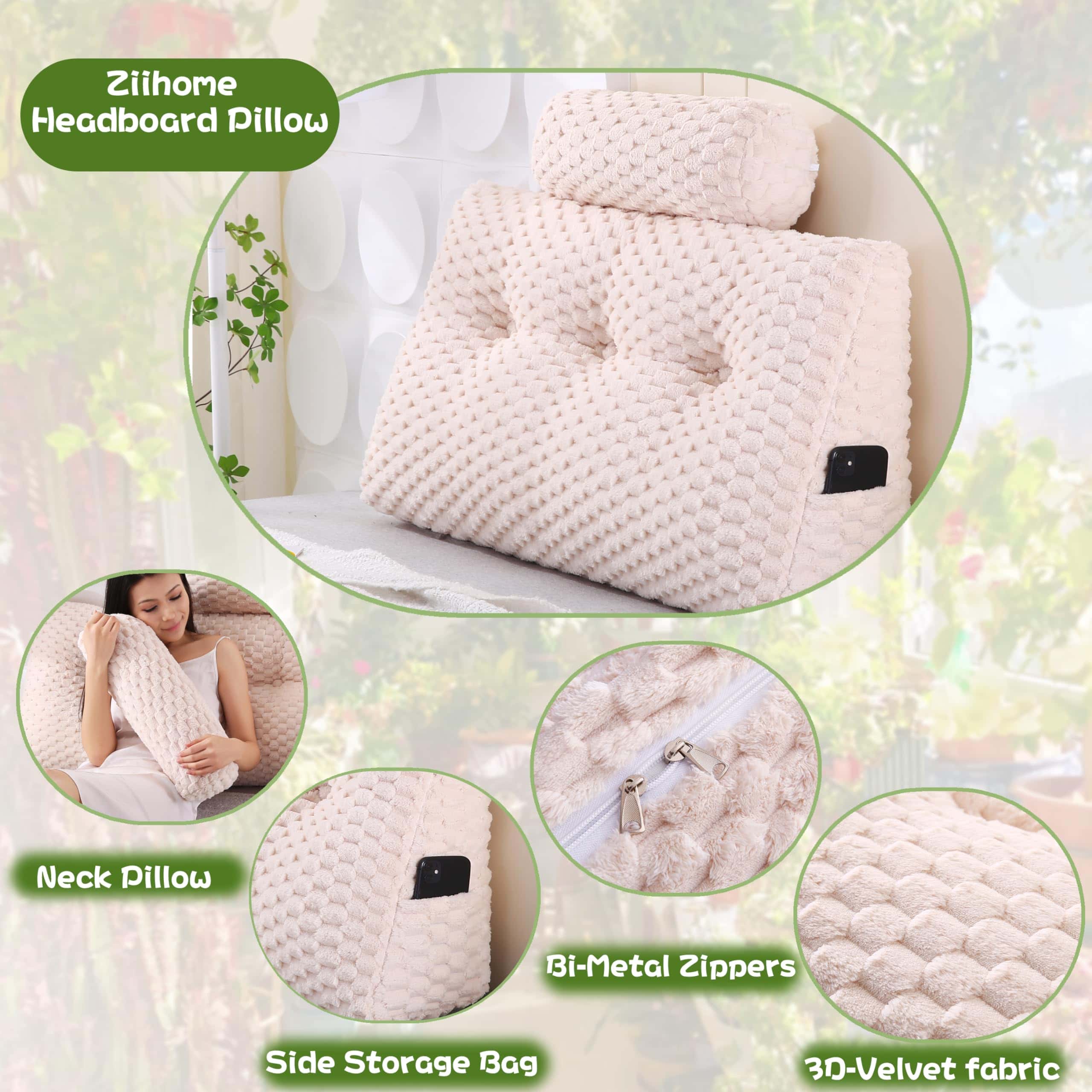 Almohada de Cabecera Ziihome + 2 Almohadas de Cilindro