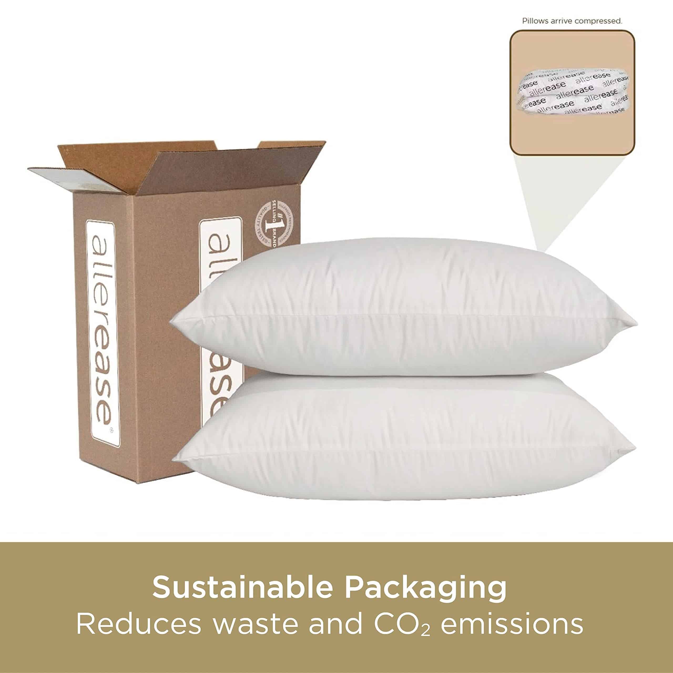 1. 2 PAQUETES: Con empaque que ahorra espacio, las almohadas llegan comprimidas para reducir residuos y emisiones de CO2.