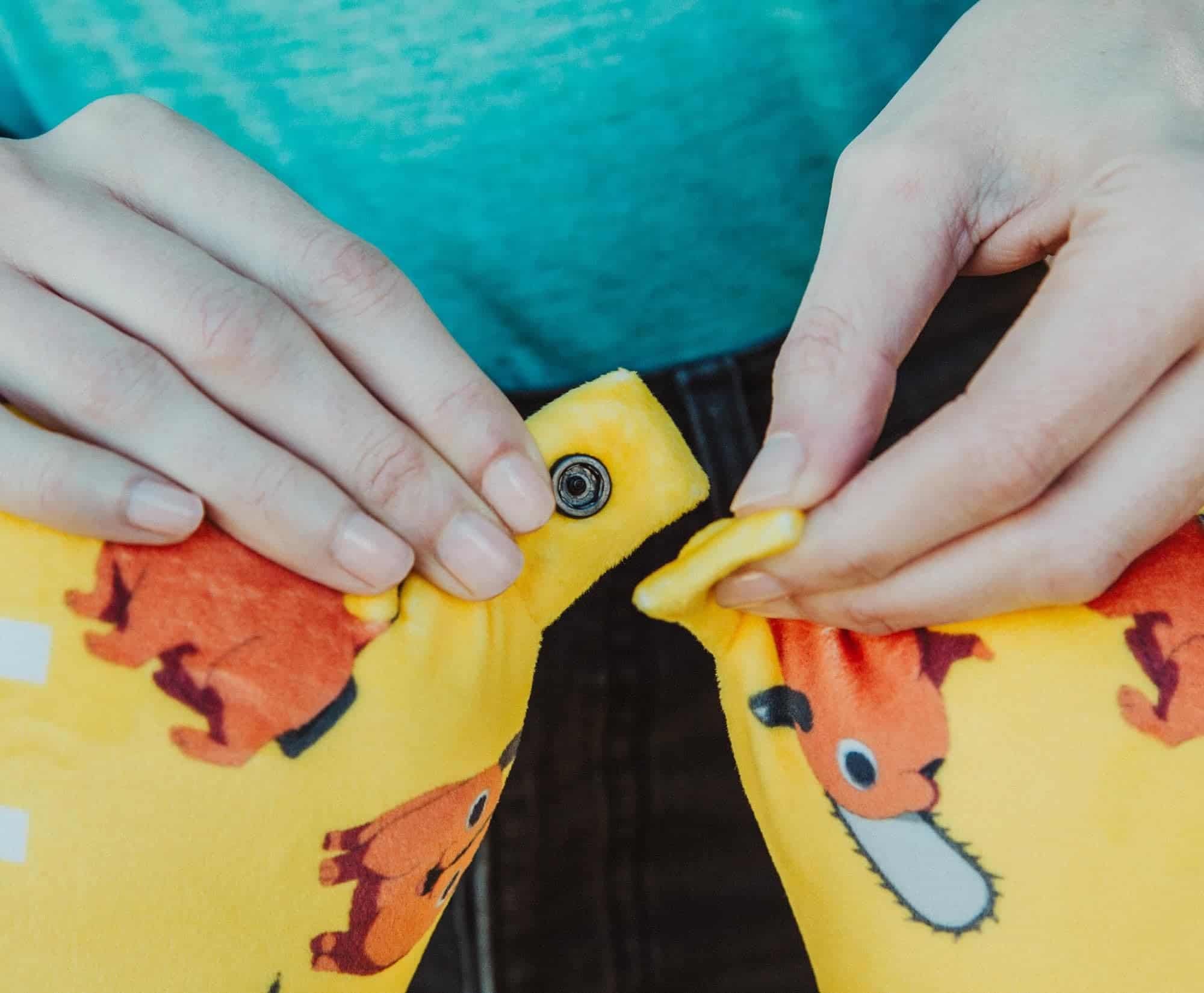 2. UN PERRO DIABÓLICO EN EL QUE PUEDES CONFIAR: Pochita con cabeza de motosierra se encarga de eliminar la incomodidad demoníaca. Decorado con el Demonio de la Motosierra en un encantador estampado, este cómodo rollo de cuello de peluche cubre todas tus necesidades de relajación como cazador de demonios.
