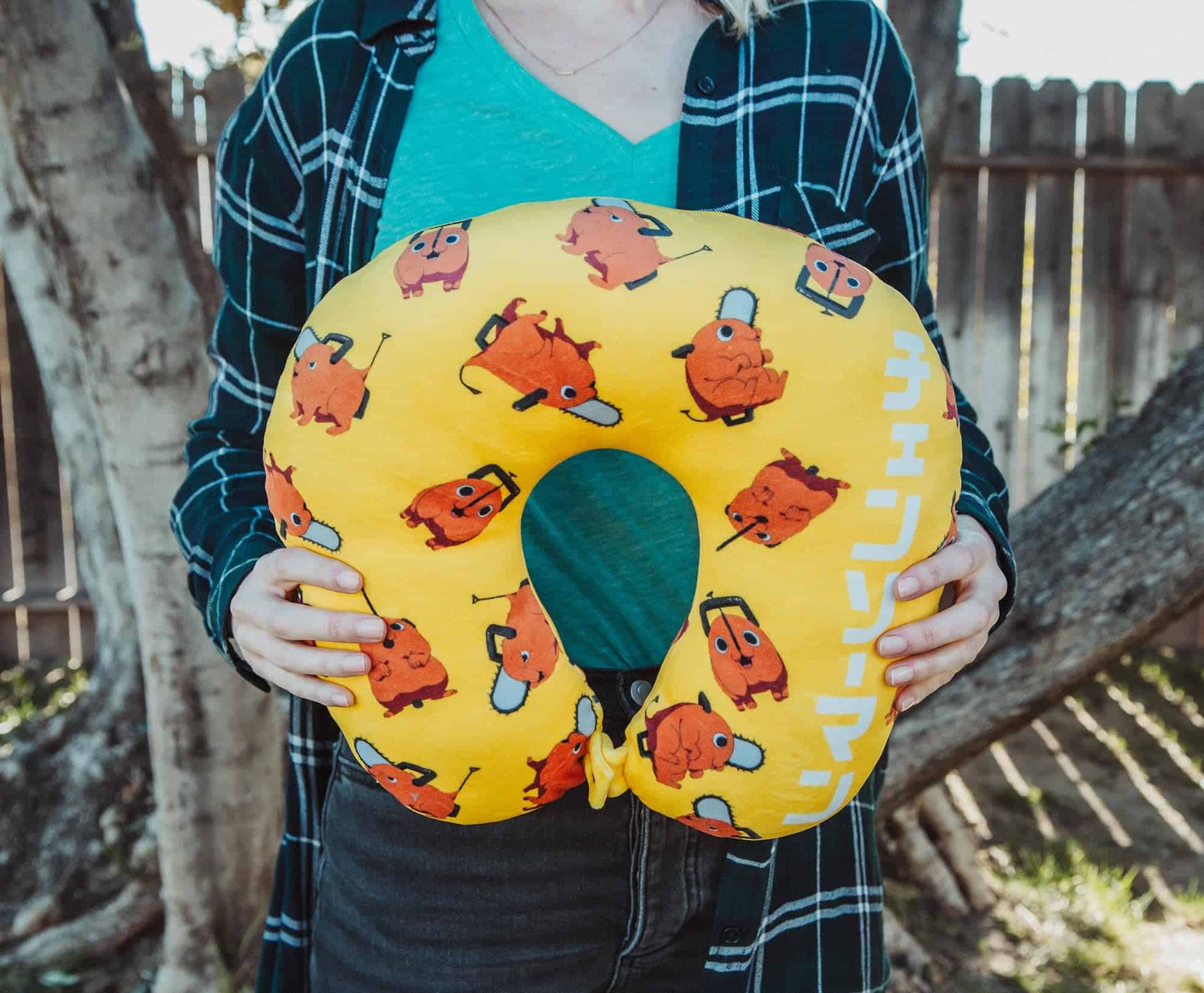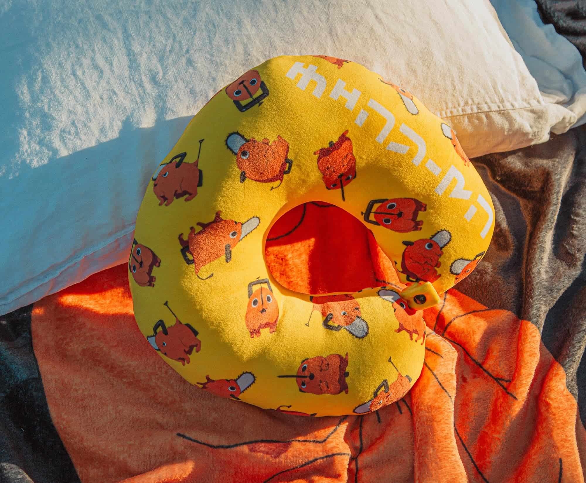 1. EL COMPAÑERO DE VIAJE PERFECTO: Ansioso por ayudar en tu próxima misión de caza de demonios está Pochita como esta almohada de viaje. Estarás listo para la acción con este amigo de peluche que te acompañará en tus aventuras, inspirado en la exitosa serie de anime y manga Chainsaw Man.