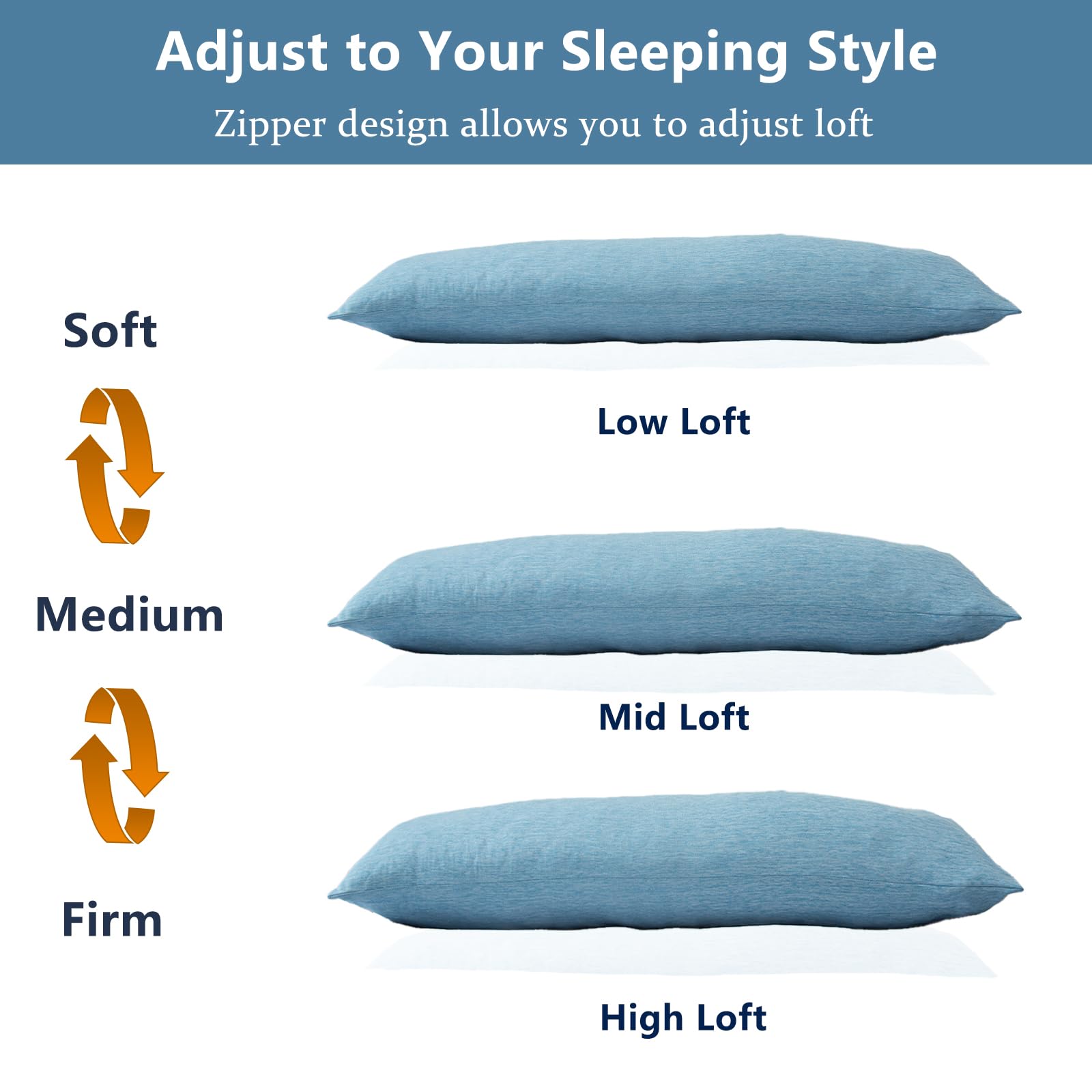 Rellenas de espuma de memoria triturada, nuestras almohadas de cuerpo para dormir reducen la tensión en la cabeza, cuello, espalda, cadera y rodillas, garantizan un soporte óptimo en todos los ángulos. La almohada de cuerpo firme cuenta con una cubierta con cremallera para que puedas agregar o quitar relleno de espuma para ajustar la altura, proporcionándote suavidad de calidad de hotel y ofreciendo la firmeza adecuada. El relleno de espuma de memoria triturada permite una mejor ventilación y circulación del aire a lo largo de la almohada larga y previene eficazmente la humedad, manteniendo la almohada transpirable para que te sientas más cómodo mientras duermes. La almohada larga para cama cuenta con una elegante cubierta de enfriamiento, siendo más duradera y hermosa, perfecta no solo para dormir, sino también como almohada decorativa para la cama y añadiendo elegancia adicional a tu dormitorio.
