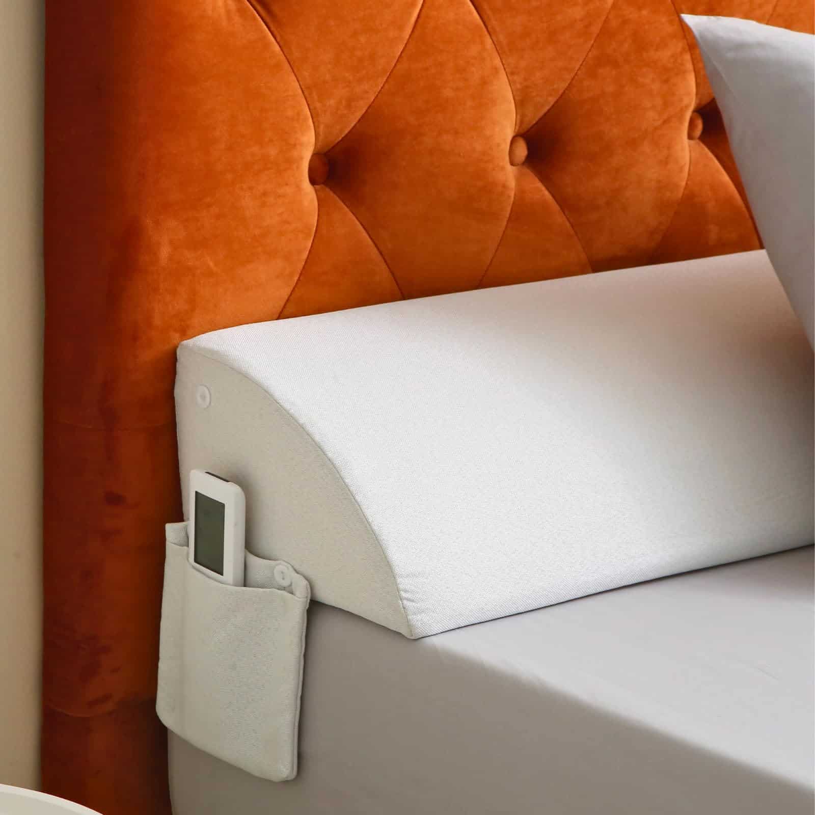 3. Bolsillo lateral conveniente: equipado con un bolsillo extraíble para guardar aparatos como teléfonos, mandos a distancia y productos de cuidado de la piel pequeños, elimina la necesidad de levantarte antes de acostarte, mejorando la comodidad y conveniencia de tus rutinas de sueño.