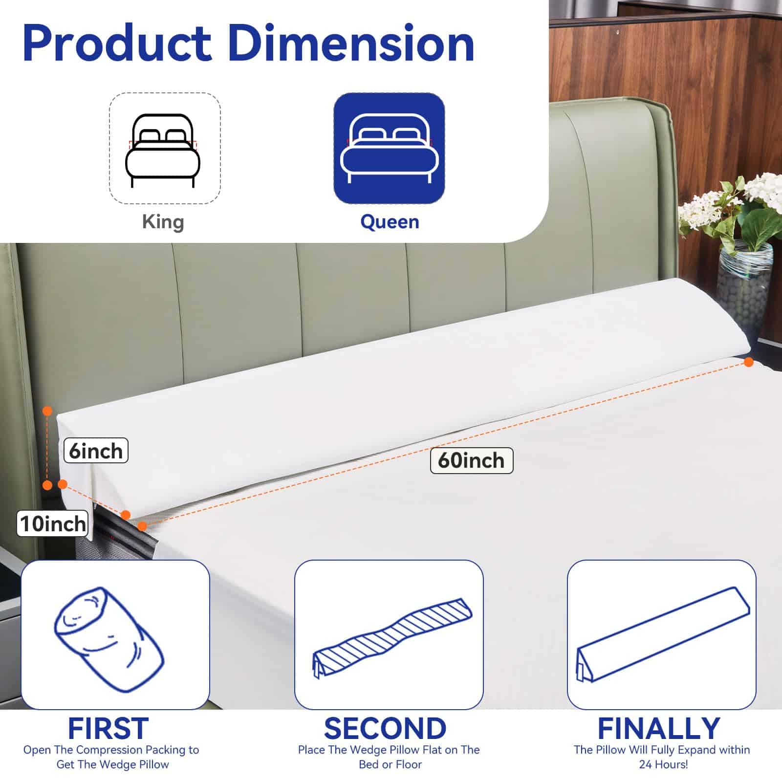 2. Relleno de brecha en la cama: diseño ligeramente inclinado con curvatura para un mejor ajuste alrededor del cuello. Está diseñado para llenar el espacio entre tu colchón y el cabecero de la cama o la pared, evitando que los objetos se deslicen, y su diseño antideslizante garantiza un sueño estable y sin interrupciones.