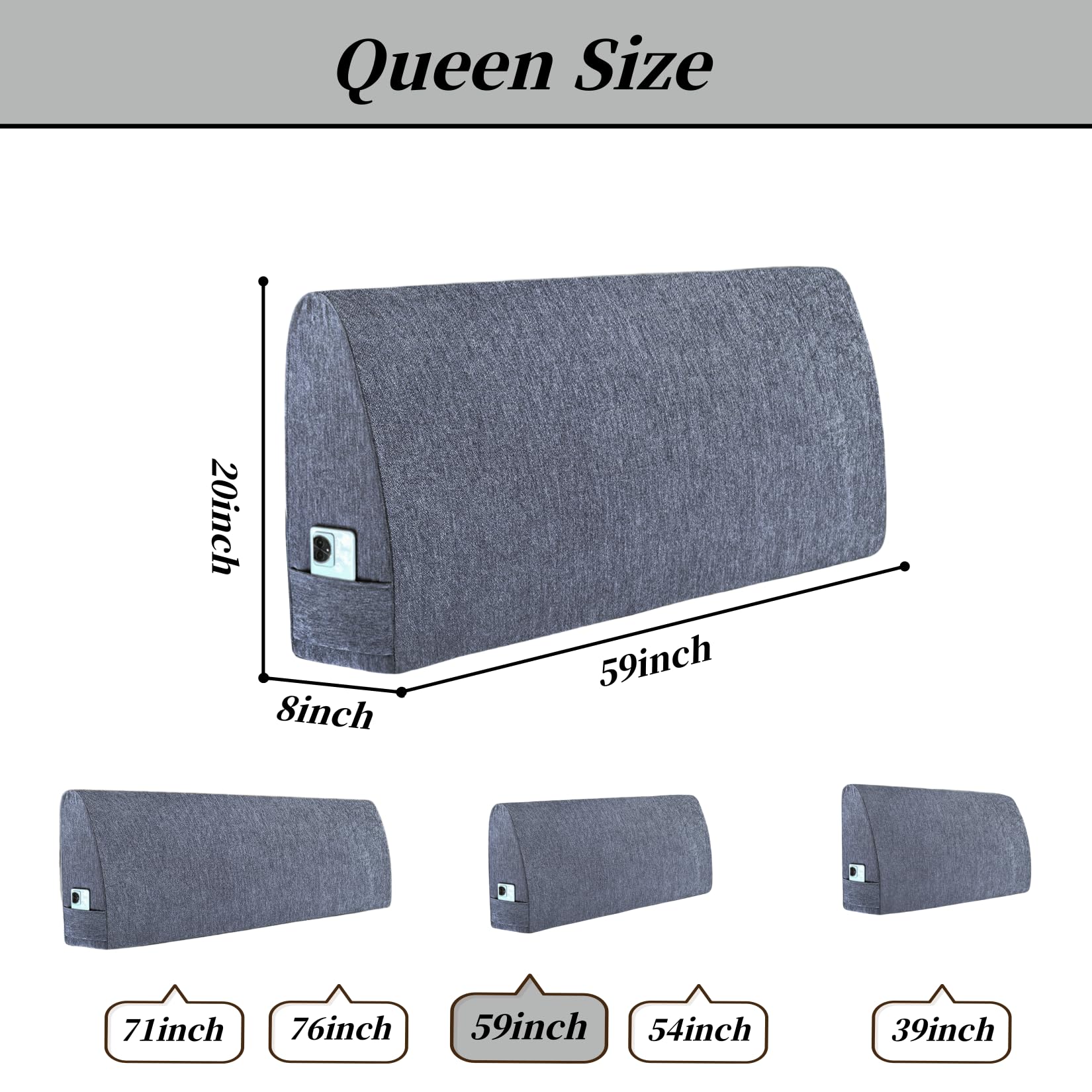 4. Almohada de cuña multiusos: El cojín de cabecero está disponible en 5 tamaños, (Individual 39x8x20 pulgadas) (Completa 54x8x20 pulgadas) (Queen 59x8x20 pulgadas) (California King 71x8x20 pulgadas) (King 76x8x20 pulgadas). Al comprar, puedes elegir el tamaño adecuado según el tamaño de tu cama. La almohada de cuña se puede utilizar no solo como almohada, sino también como cabecero para decorar la habitación. Adecuado para diversas ocasiones.