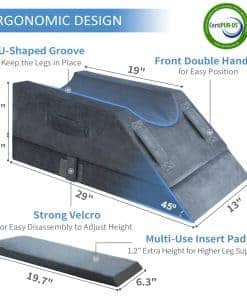 Almohada de Elevación de Piernas KingPavonini Ajustable en Altura con 4 Niveles para Después de Cirugías, Lesiones o Descanso, Almohadas de Piernas de Espuma Viscoelástica para Dormir con 3 Asas y Almohadilla Insertable, Cubierta de Terciopelo Lavable. Cuatro alturas ajustables mejoradas: Altura ajustable única, desde 3.5 pulgadas hasta 10.2 pulgadas, suficiente para elevar toda tu pierna por encima del nivel del corazón, sin importar tu altura. Para una altura más baja, simplemente quita la capa inferior; para una altura más alta, solo agrega almohadilla insertable extra. Almohadas de elevación de piernas desmontables externamente aseguran un ajuste de altura más fácil. Almohada de pierna suave pero de apoyo: La capa superior de las almohadas de piernas para elevación está hecha de espuma viscoelástica suave con partículas de gel, lo que garantiza comodidad y frescura incluso con uso prolongado. Las 2 capas inferiores están hechas de espuma de alta densidad, que proporciona suficiente apoyo y no se deforma después de un uso prolongado. Almohadas ergonómicas en forma de cuña para después de la cirugía: Diseñadas con una inclinación de 40 , las almohadas de elevación de piernas para la hinchazón proporcionan la altura de elevación más adecuada para la pierna, promoviendo la circulación sanguínea y reduciendo el dolor en la pierna. La ranura en forma de U y la almohadilla insertable mantienen la pierna en su lugar, evitando que se resbale al dormir. Especialmente diseñado para cirugía de rodilla, reemplazo de cadera y fémur, recuperación de lesiones en la pierna. Almohadilla insertable multiusos adicional: Combinada con esta almohadilla, disfrutarás de más comodidad al usar la almohada de cuña para piernas, que se ajusta perfectamente al hueco poplíteo y al tobillo, y proporciona una excelente estabilidad. Puedes colocar la almohadilla debajo de toda la pierna para añadir 1.2 pulgadas de altura o doblarla para añadir 2.4 pulgadas de altura, o colocarla en un lado de la pierna para hacer la ranura más estrecha y ajustarse a la pierna más delgada. Diseño íntimo con múltiples asas y antideslizante: Dos asas en la parte frontal de las almohadas de piernas para dormir hacen que sea más fácil tirar y posicionar la almohada de piernas, ya sea con la mano izquierda o derecha, y el asa lateral es para transportar. La parte inferior de la cubierta de la almohada está diseñada con partículas de silicona antideslizantes para evitar que la almohada de piernas se mueva durante el uso.