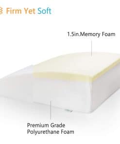 La almohada de elevación de piernas OasisSpace de 8″ con tapa de espuma viscoelástica es una excelente opción para aquellos que buscan alivio y comodidad mientras duermen o descansan. Este producto terapéutico puede ayudar a aliviar el dolor en la espalda, cadera y rodilla, así como mejorar la circulación sanguínea y reducir la hinchazón. Con una capa de espuma viscoelástica de 1.5 pulgadas en la parte superior de una base firme de espuma, esta almohada proporciona un soporte cómodo y ergonómico para sus piernas y pies.