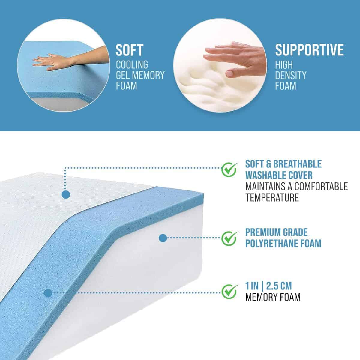 1. DESCANSA, RELÁJATE Y RECUPÉRATE – Esta versátil almohada de espuma con gel refrigerante es perfecta como almohada de cuña para piernas, reposo de piernas, cuña para cama y respaldo.