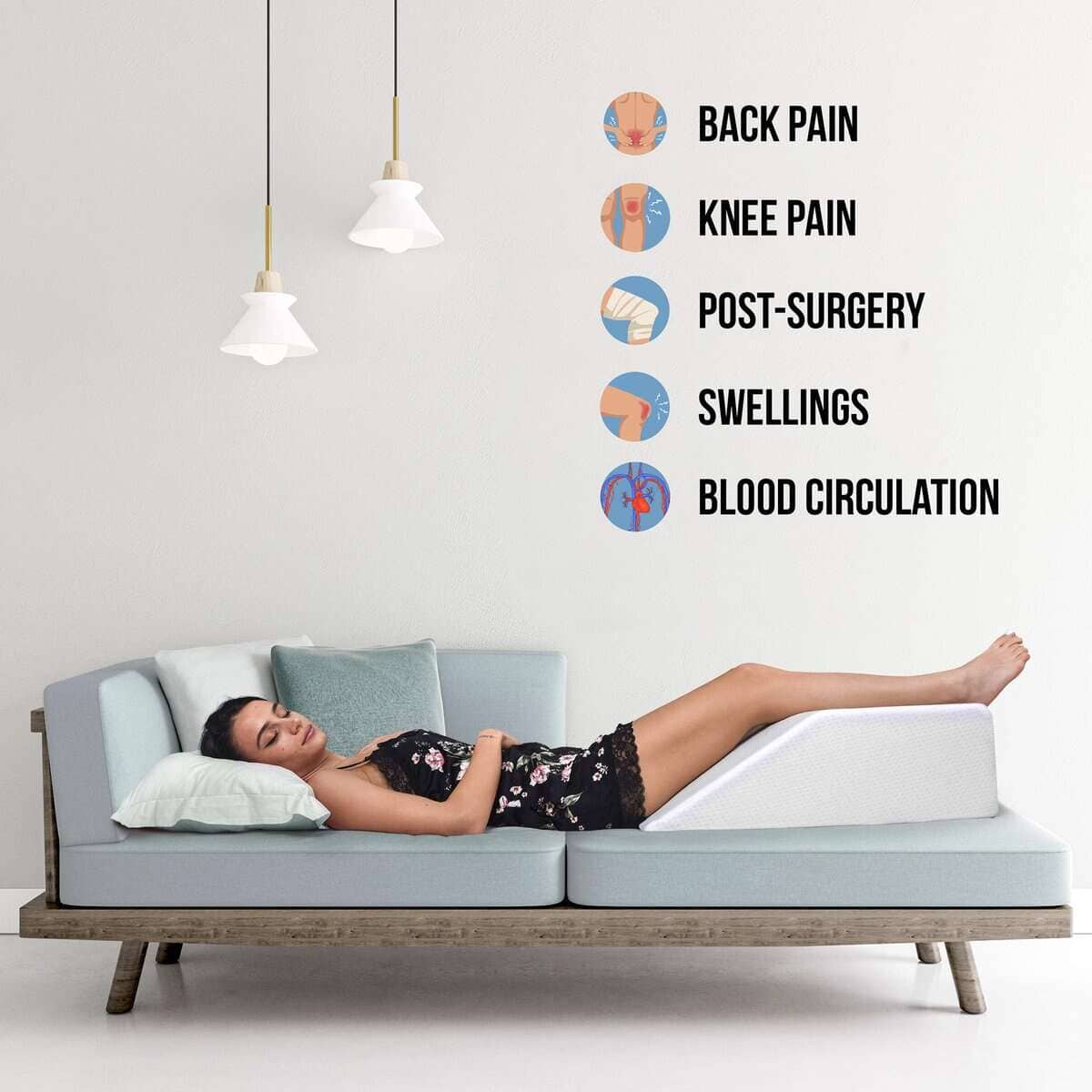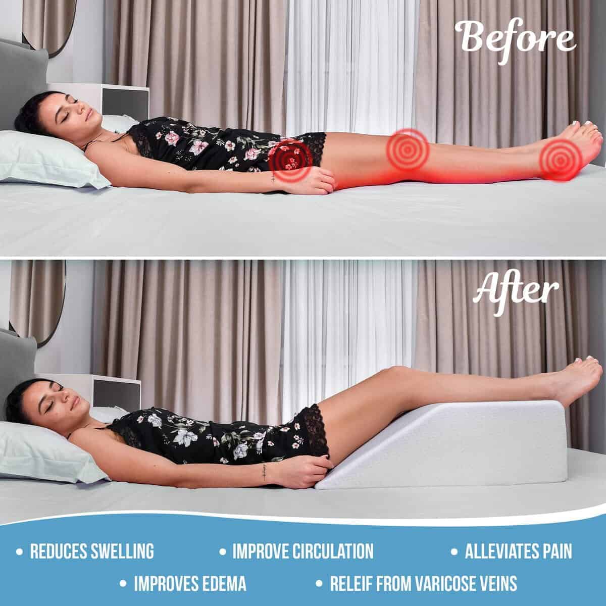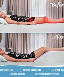 4. MEJORA LA SALUD Y MEJORA EL SUEÑO – Elevar las piernas y los pies mientras descansas mejora la circulación sanguínea, alivia la hinchazón y reduce el dolor de espalda y piernas. Esta almohada también se puede utilizar como almohada de cuña después de una cirugía para ayudar con el alivio del dolor.