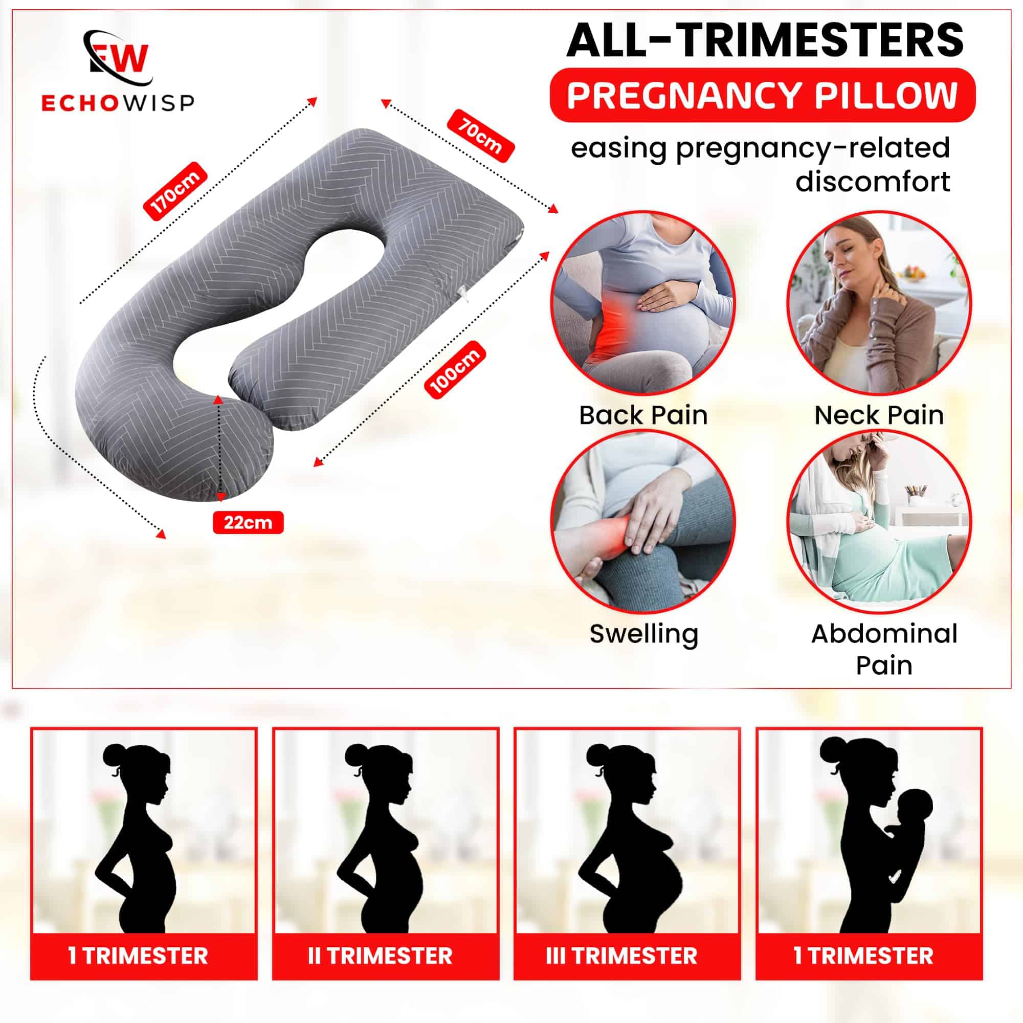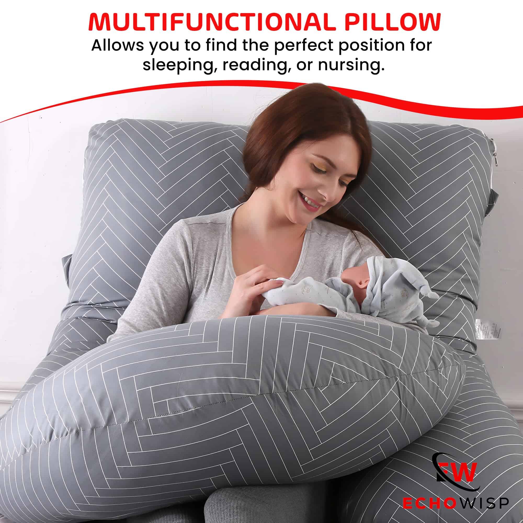 Almohada de Embarazo EchoWisp en Forma de U, 100% Algodón,