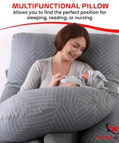 6. Perfecto para después del parto: Esta almohada no es solo para el embarazo, su diseño ergonómico la convierte en la compañera perfecta para la recuperación después del parto o como ayuda para la lactancia, proporcionando un confort continuo mucho después de que llegue tu pequeño.