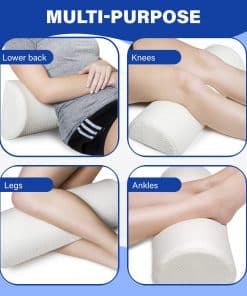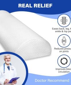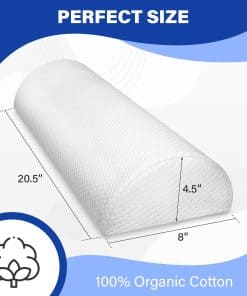 Cojín de rodilla en forma de media luna diseñado para proporcionar alivio del dolor lumbar y ofrecer un soporte cómodo para dormir de lado, de espaldas o boca abajo. Este cojín semirredondo y cuña lumbar ayuda a reducir el estrés en el cuello, columna, espalda, cadera y tobillo. La funda está hecha de algodón orgánico para un tacto suave y cómodo.