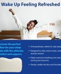 3. SOPORTE FACIAL COMPLETO. La almohada para dormir de lado está diseñada para reducir la presión en la mandíbula y el oído, ayudando a relajar el área facial. Acuna suavemente la cara, proporcionando comodidad y soporte.