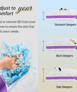 Almohada de gel de espuma viscoelástica de alta calidad. Ajustable para proporcionar suavidad y firmeza personalizada. Diseñado con tecnología de enfriamiento de doble cara para mantener frescura. Certificado por CertiPUR-US para garantizar calidad. Con funda lavable para facilitar el mantenimiento. Ideal para regalar en Navidad a mujeres y hombres de todas las edades.