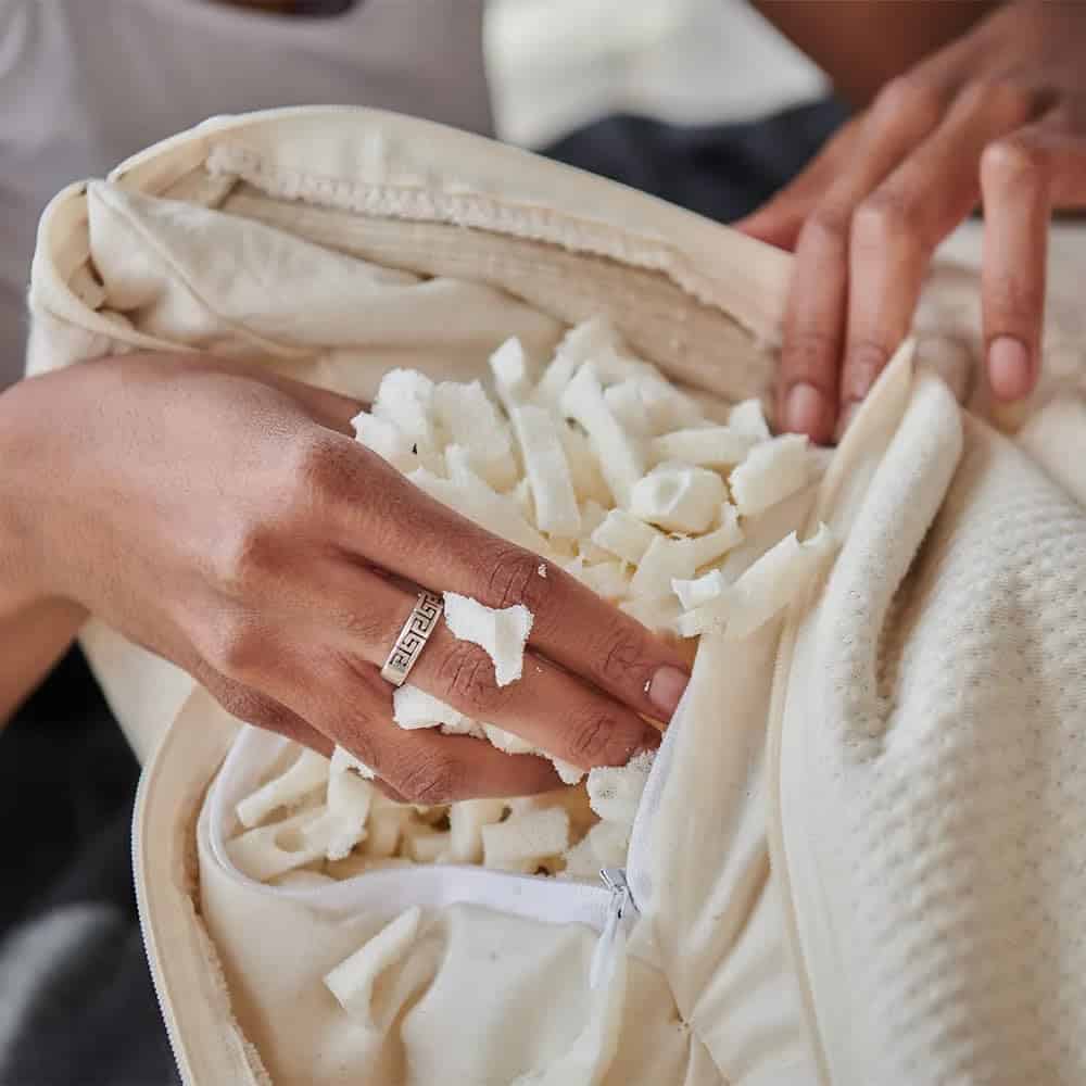 4. FÁCIL CUIDADO Y MANTENIMIENTO: Mantén tu almohada fresca y limpia con la funda de algodón orgánico extraíble y lavable a máquina. El relleno de látex también está contenido en un recubrimiento interno de jersey de algodón orgánico para facilitar la extracción y reemplazo.